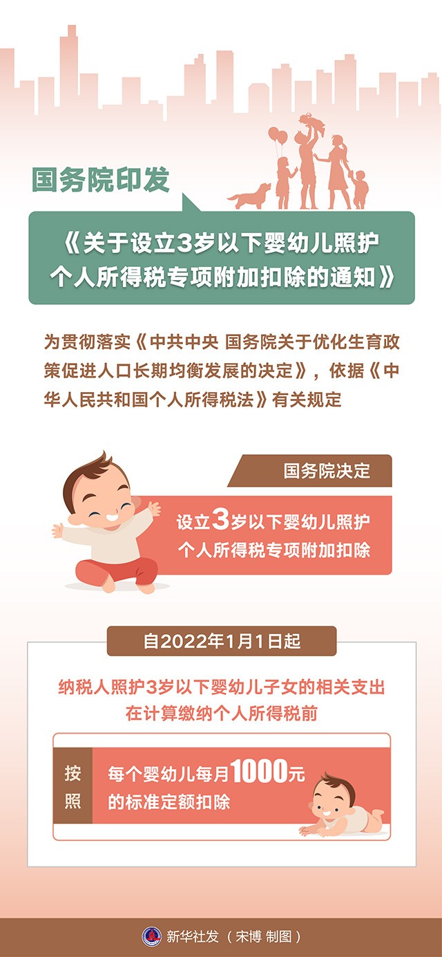 图表:国务院印发《关于设立3岁以下婴幼儿照护个人所得税专项附加扣除的通知》