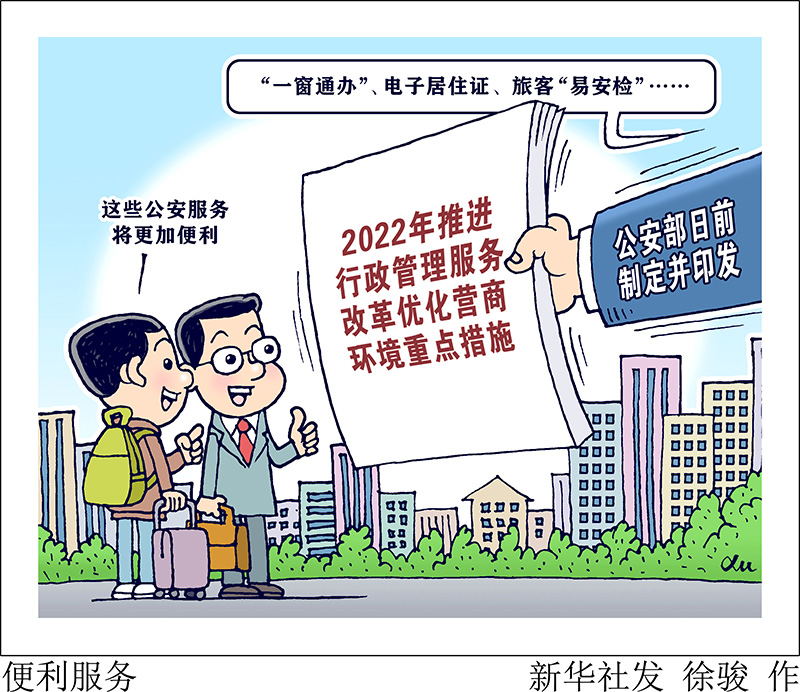 试行公安服务“一窗通办”、探索实施电子居住证改革、在大型机场开通旅客“易安检”服务……公安部日前制定并印发2022年推进行政管理服务改革优化营商环境重点措施。
