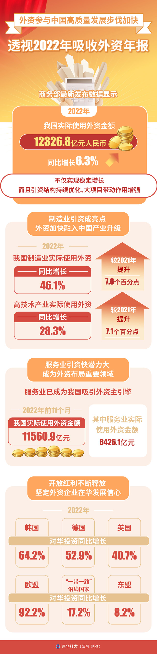 商务部最新发布数据显示,2022年,我国实际使用外资金额12326.8亿元人民币,同比增长6.3%。不仅实现稳定增长,而且引资结构持续优化、大项目带动作用增强。印证外资企业看好中国经济发展前景,参与中国高质量发展步伐加快。