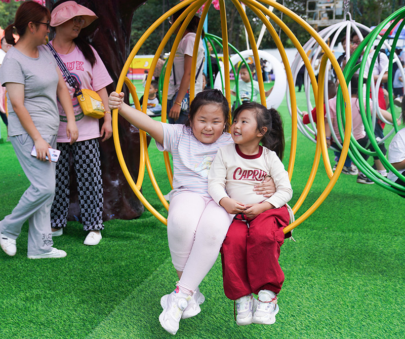10月3日,孩子们在山东省邹平市一家游乐园游玩。