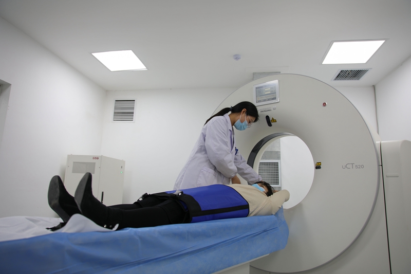 2023年3月2日,安徽省合肥市包河区烟墩街道社区卫生服务中心的医护人员为患者进行CT检查。新华社记者 曹力 摄