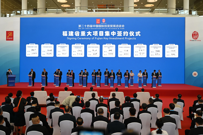 这是在第二十四届中国国际投资贸易洽谈会现场举行的福建省重大项目集中签约仪式现场(9月8日摄)。