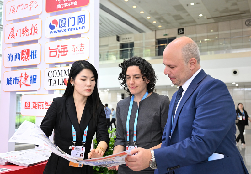 9月8日,来自阿根廷的外宾向厦门日报全媒体新闻报道中心的工作人员了解厦门的投资环境。
