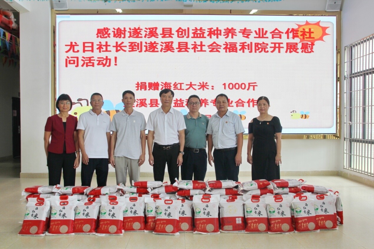 8月4日上午,县政协委员、遂溪县创益种养专业合作社社长尤日分别前往县福利院、遂城街道雨花斋长者饭堂进行慰问,捐赠海红米共2000斤,价值近2万元。