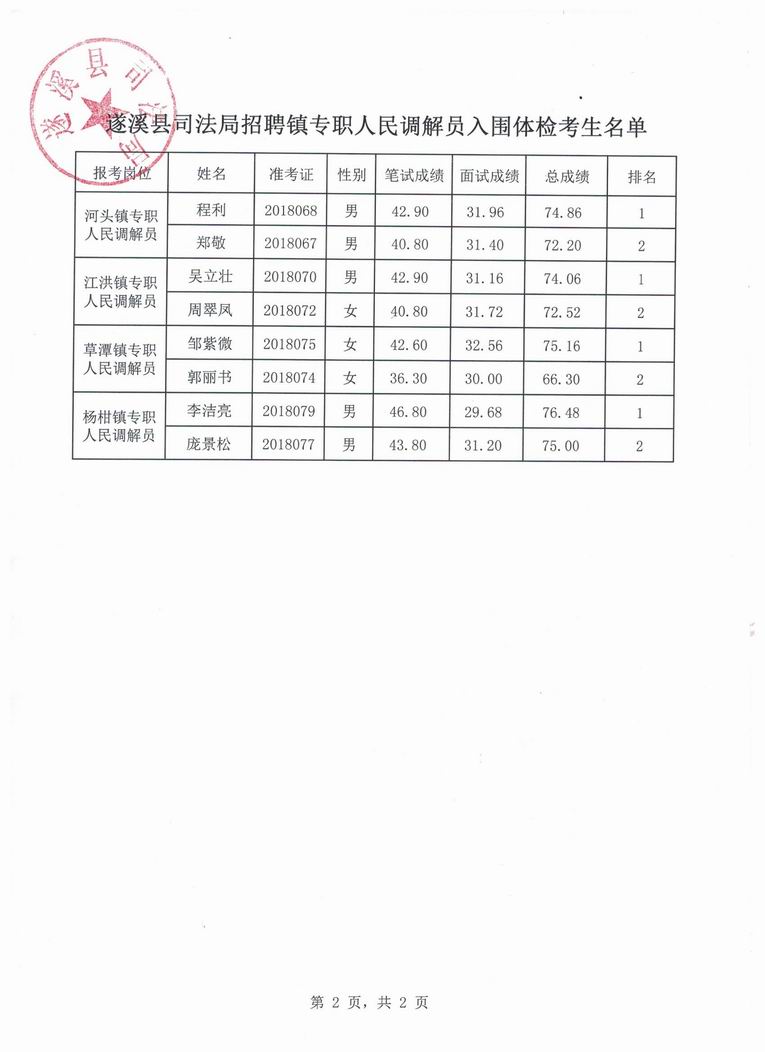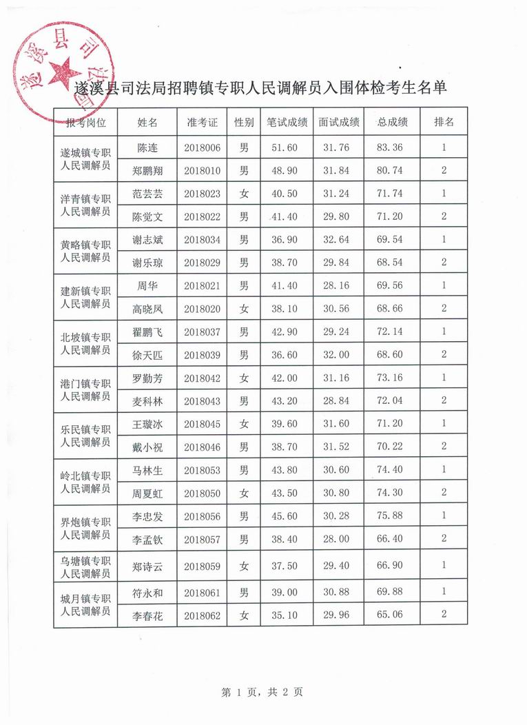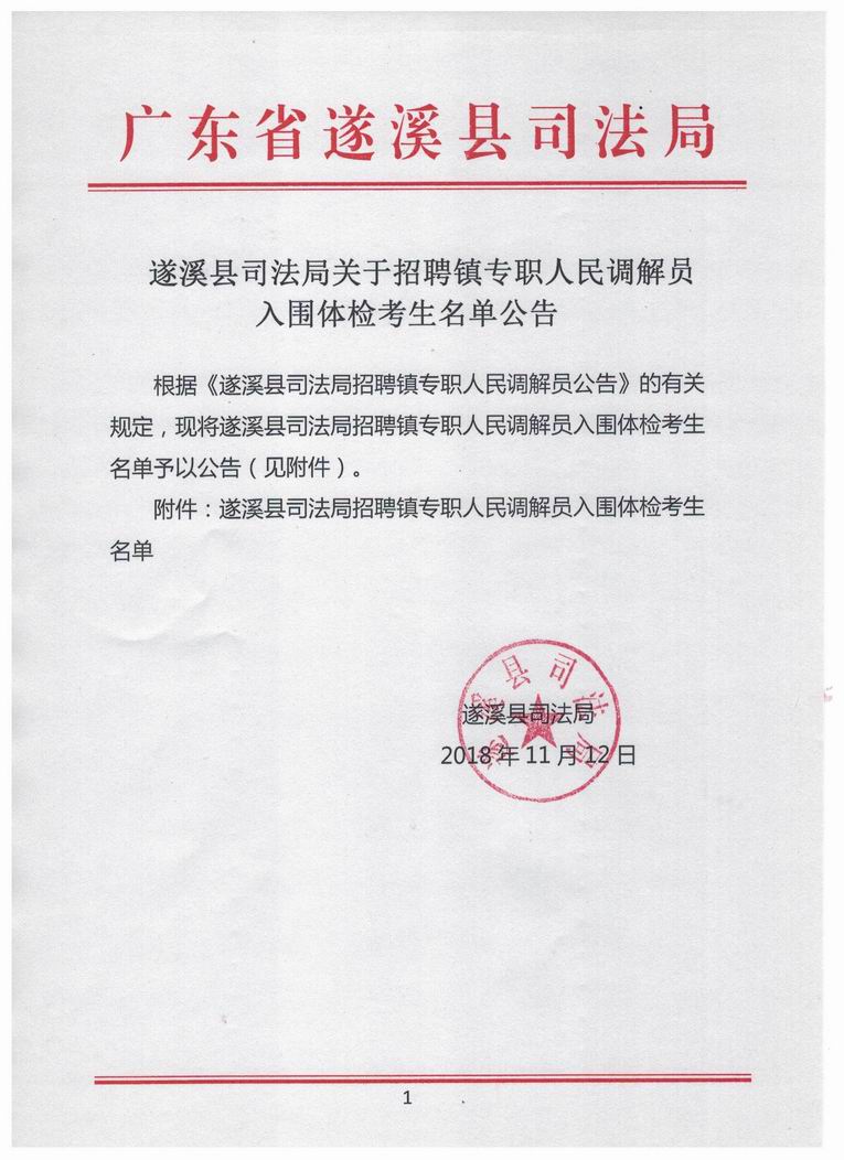 遂溪县司法局关于招聘镇专职人民调解员入围体检考生名单公告