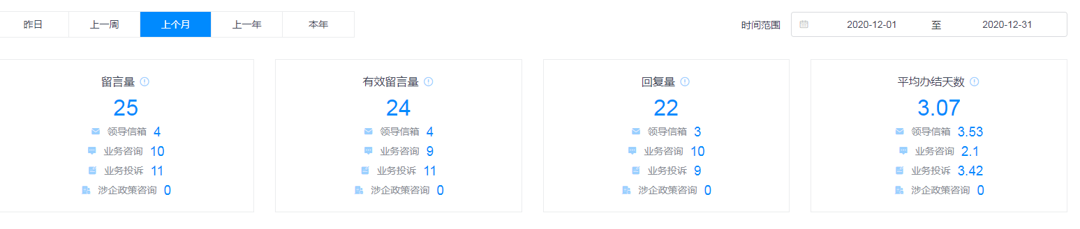 本站点互动交流留言类型统计(2020年12月)