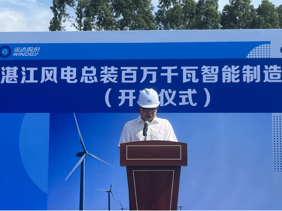 2023年6月19日上午,在城月镇工业园区举行湛江风电总装百万千瓦智能制造中心开工仪式。副县长方羽乐出席开工仪式并讲话。方羽乐代表县委、县政府向湛江运达新能源有限公司表示热烈的祝贺。他表示,大力推进招商引资大会战是遂溪深入实施“工业立市、工业强市”发展战略的重要抓手,是承接粤港澳大湾区、海南自贸港产业辐射和对接合作的有效途径,是建设现代化沿海经济带重要发展极、推动实现振兴发展的必经之路。希望湛江风电总装百万千瓦智能制造中心项目全力推动项目早日投产达产,各级各部门各尽所能、合力攻坚,共同打造零碳产业园基地的“航母”。县工业园区、招商局、发改局、住建局、科工贸局、自然资源局、湛江市生态环境保护局遂溪分局、城月镇等单位领导出席仪式。