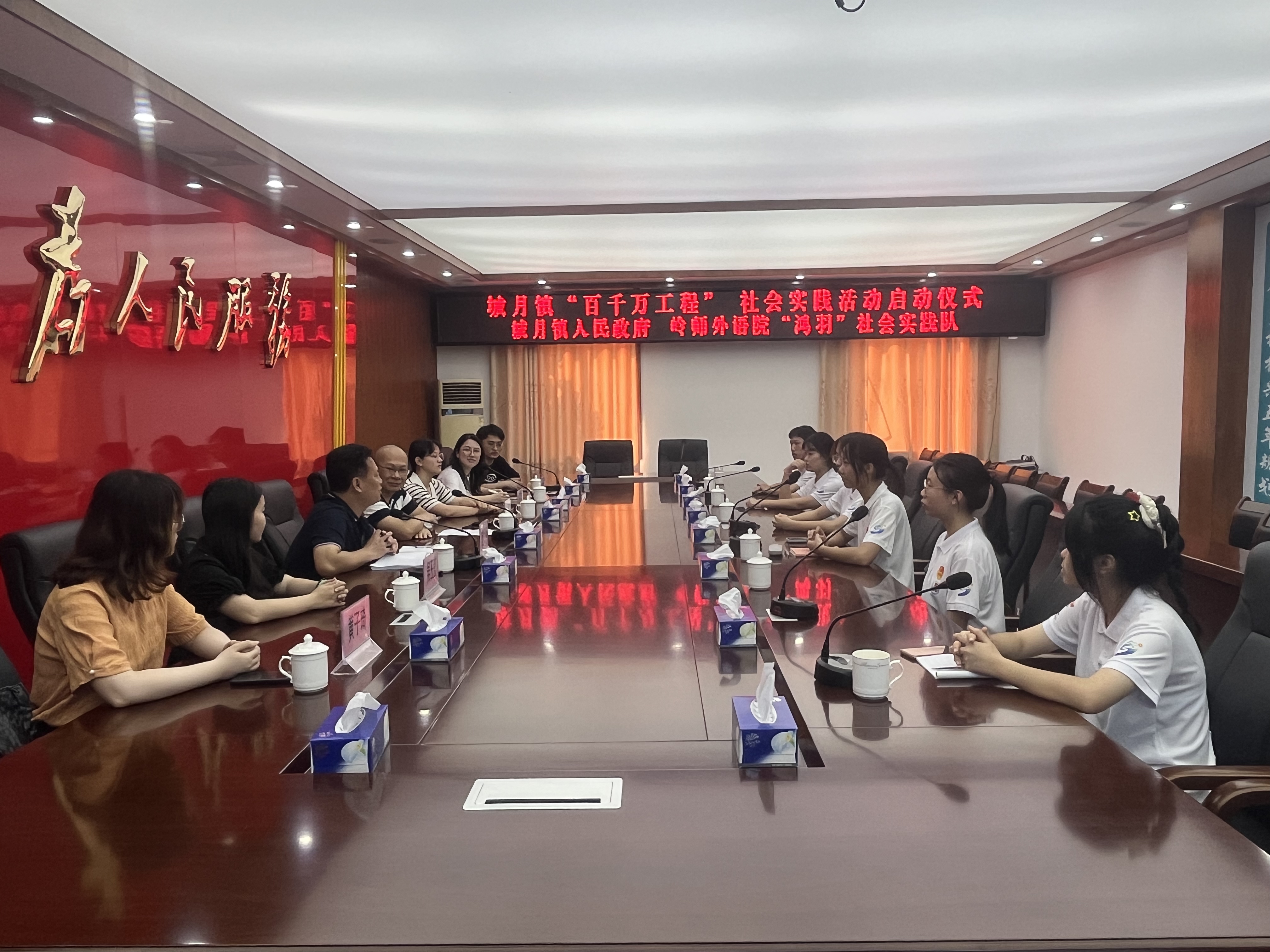 2023年7月10日上午,城月镇“百千万工程”社会实践活动启动仪式在城月镇人民政府二楼会议室举行,城月镇党委副书记詹战平,岭南师范学院外国语学院党委副书记杨建伟,镇团委和岭师外院团委及“鸿羽”社会实践队成员参加启动仪式。