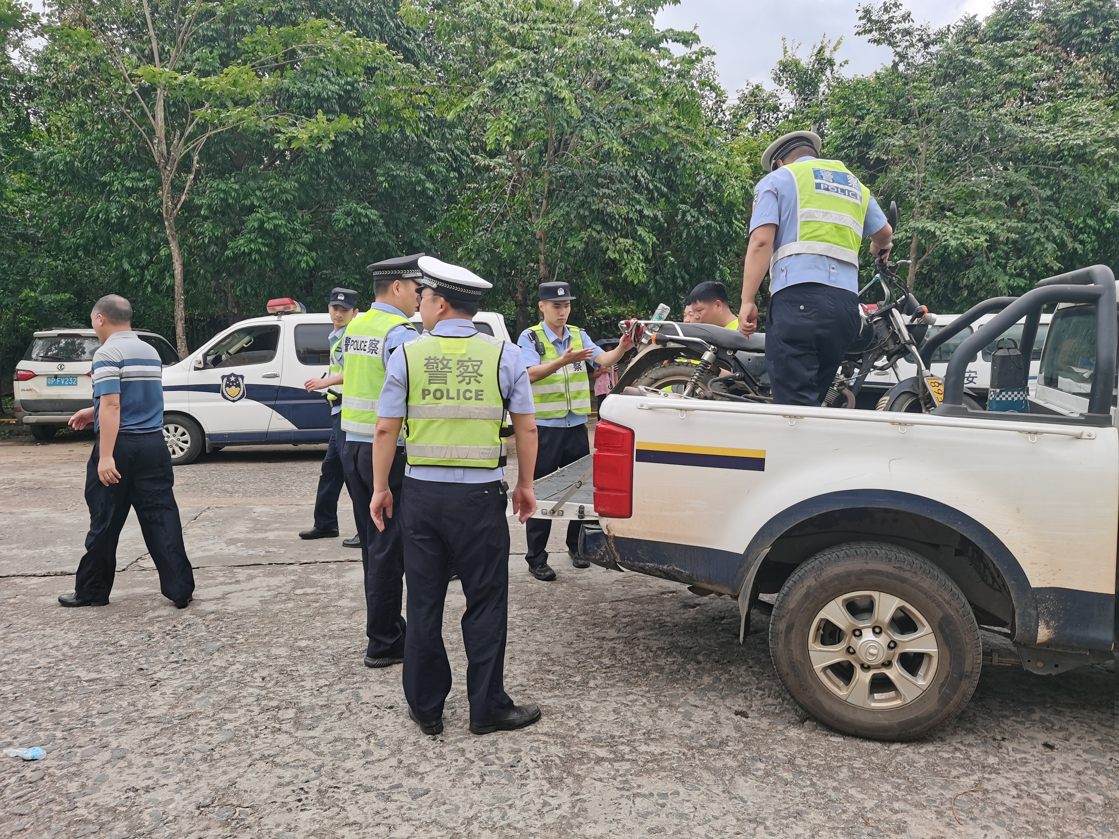 为贯彻遂溪县第三季度防范重特大生产安全事故暨道路交通安全专题工作会议精神,2023年7月20日,城月镇党委委员、副镇长全志成带队,联合城月应急办、城月交警中队、城月派出所、广前派出所、建新派出所、岭北派出所在城月镇辖区开展道路交通安全联合整治行动,本次行动中查扣问题摩托车、电动车51辆,三轮车4辆。