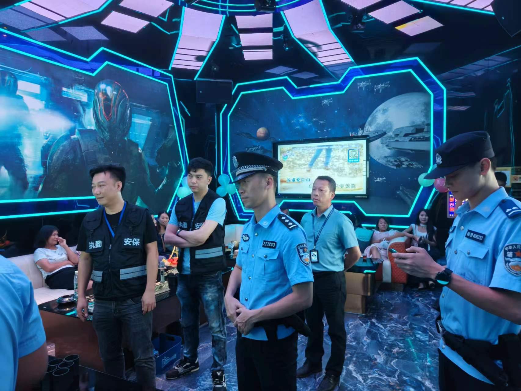为确保国庆期间社会治安秩序稳定,进一步规范娱乐场所禁毒管理工作,深化开展2023年禁毒攻坚冲刺百日行动。9月27号晚,城月镇党委副书记陈聪带领镇禁毒办联合城月派出所对辖区内的KTV进行毒品预防宣传与安全大检查。