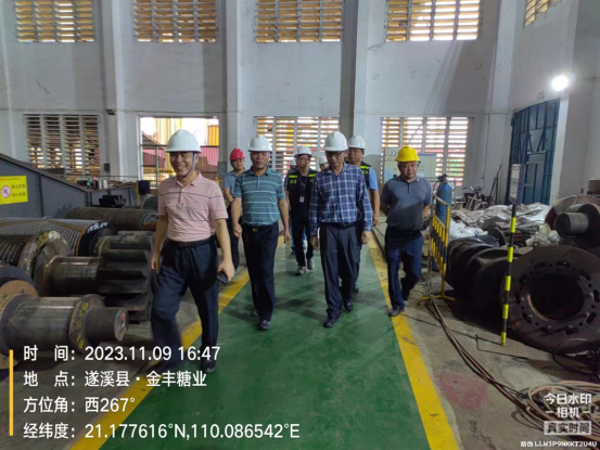 2023年11月9日下午,县科工贸局党组成员、副局长赵国聪带队到城月镇金丰糖厂开展榨季前安全生产检查。赵国聪一行深入压榨车间检查了作业防护设施设备,认真查看了制糖生产的全过程,详细询问生产情况,特别是安全生产情况;并要求开榨前企业内部要进行全面安全生产检查,及时排查各种安全隐患。