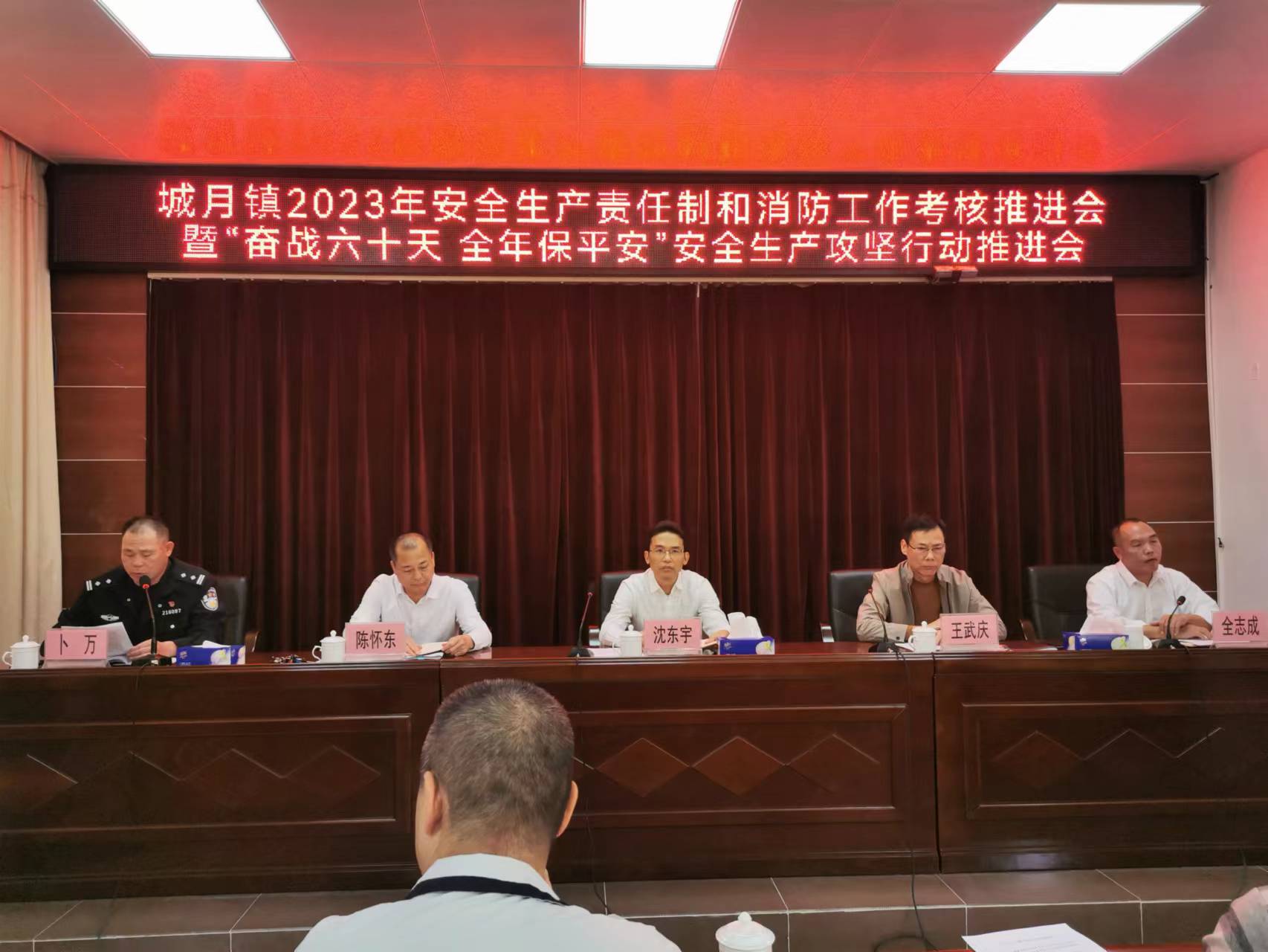2023年11月21日下午,城月镇在镇政府一楼会议室召开2023年安全生产责任制和消防工作考核推进会暨“奋战六十天 全年保平安”安全生产攻坚行动推进会,对我镇安全生产工作进行再部署再推进,会议由党委副书记、镇长王武庆主持,全体领导班子成员(含主任科员)、村(社区)支部书记、机关(企)事业单位负责人参加会议。