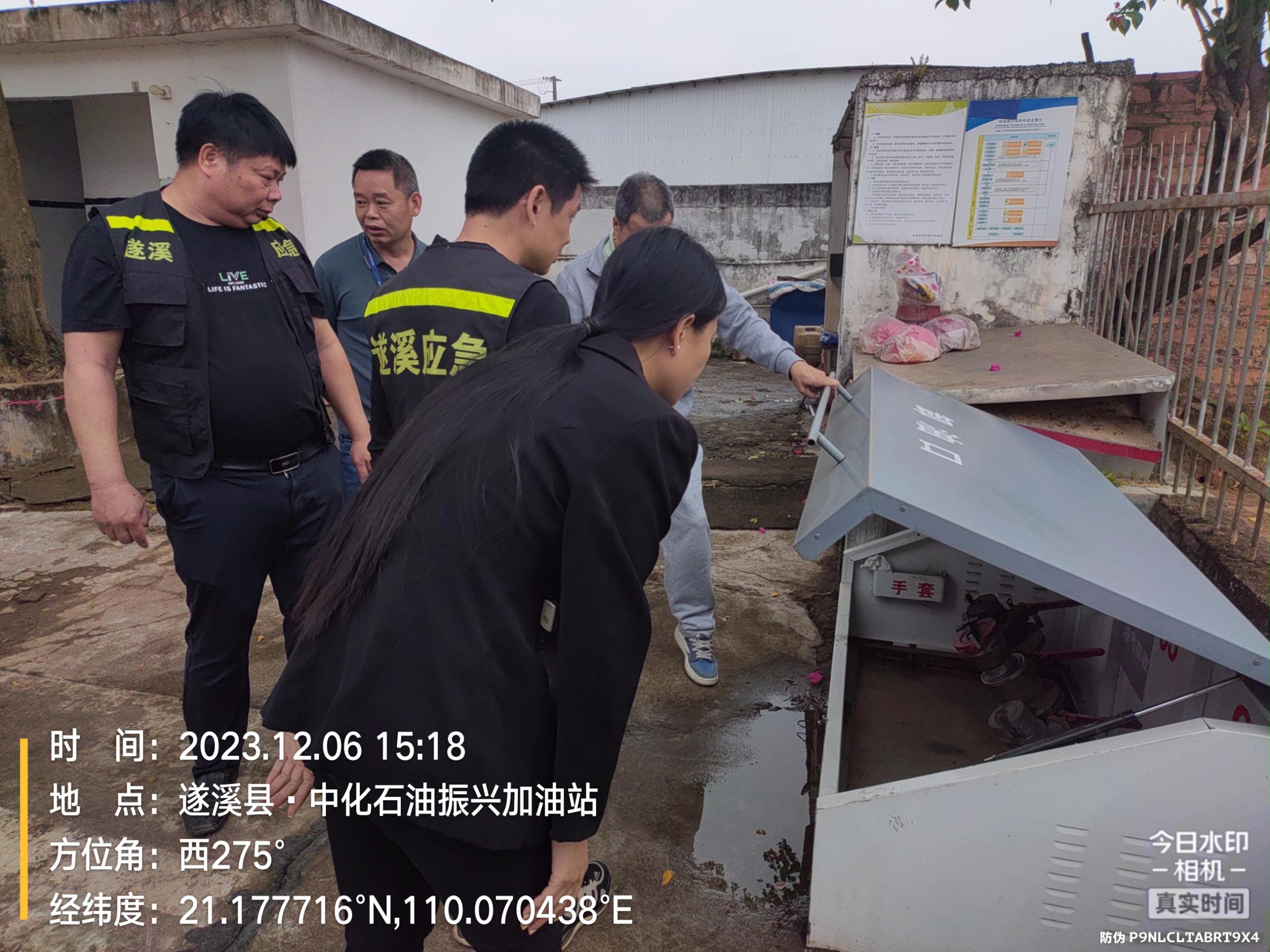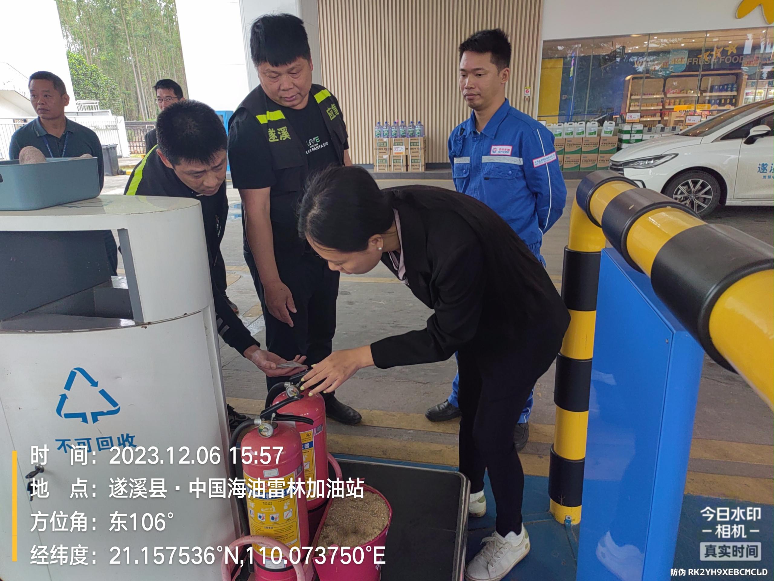 为进一步推进“奋战六十天,全年保平安”安全生产攻坚行动,2023年12月6日,城月镇应急办联合经济办开展加油站专项检查,对辖区内加油站安全责任落实、消防设施、用电安全等进行全方位检查,全面做好加油站安全管理,确保辖区公共安全和人民群众生命财产安全。