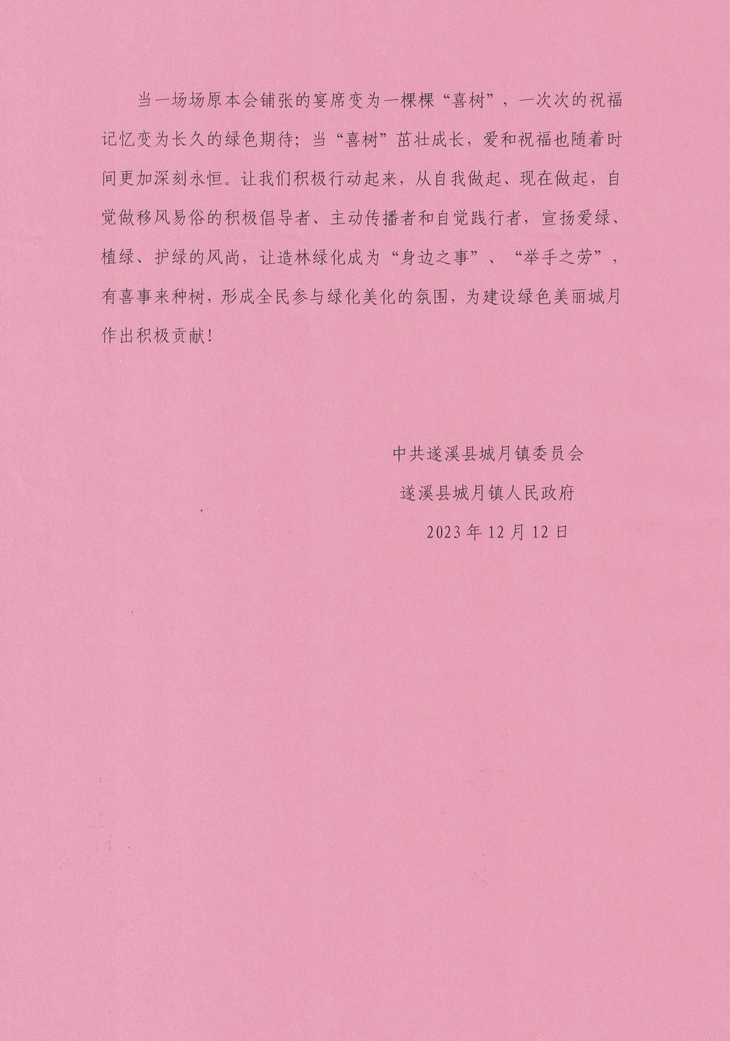 “家家户户有喜事来种树,共同建设绿色美丽城月”倡议书