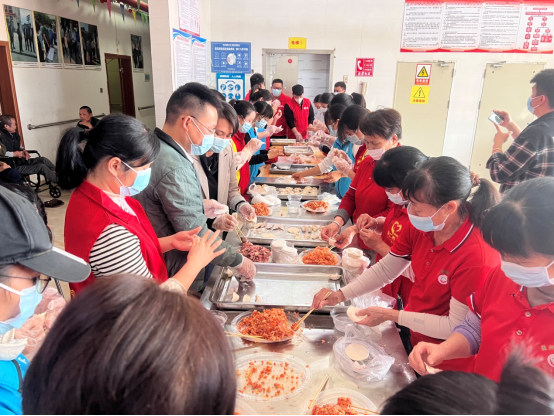“爷爷,往这里来坐…”志愿者小心翼翼地把老人扶到餐桌前,为他们端上热腾腾的饺子,还有部分志愿者推着餐车给行动不便的老人送去饺子。边吃着饺子,边和老人聊天,志愿者还亲切地跟老人们交谈,叮嘱老人们保重身体,老人激动地握着志愿者的手说:“这活动太有意义了,谢谢你们对我们的关心和照顾”,脸上洋溢着幸福温暖的笑容。
