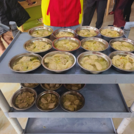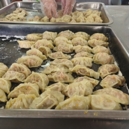 这边饺子包得热火朝天,另一边煮饺子的工作人员也没闲着,几个蒸锅同时蒸,很快热气腾腾的饺子就出锅了,为了老人更好地品尝,还贴心为老人准备了肉汤。