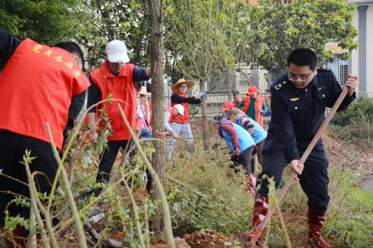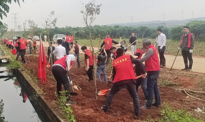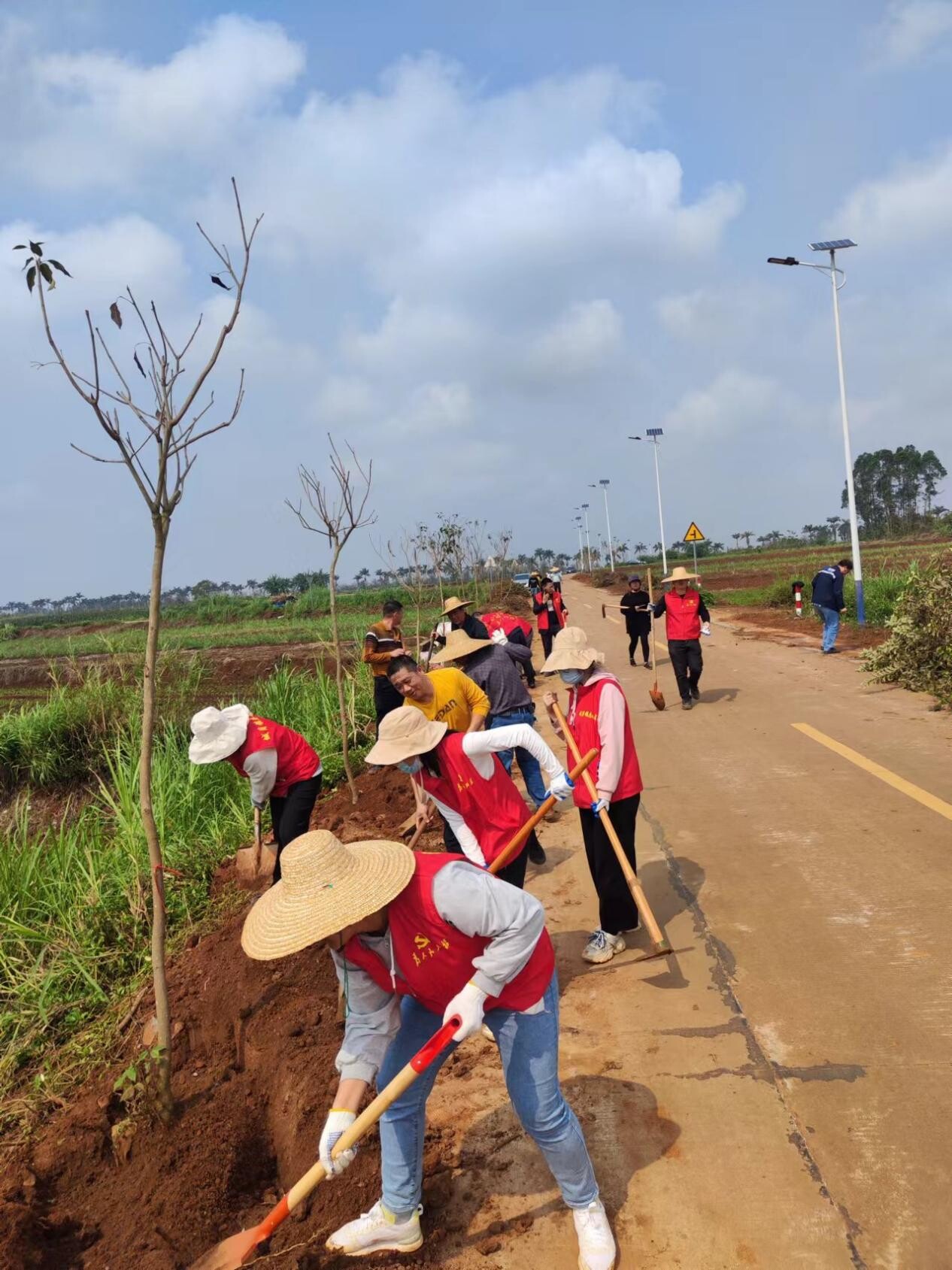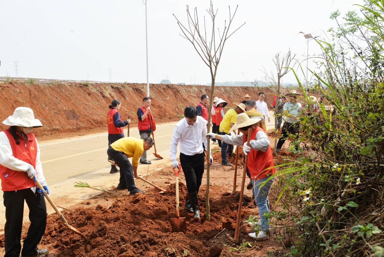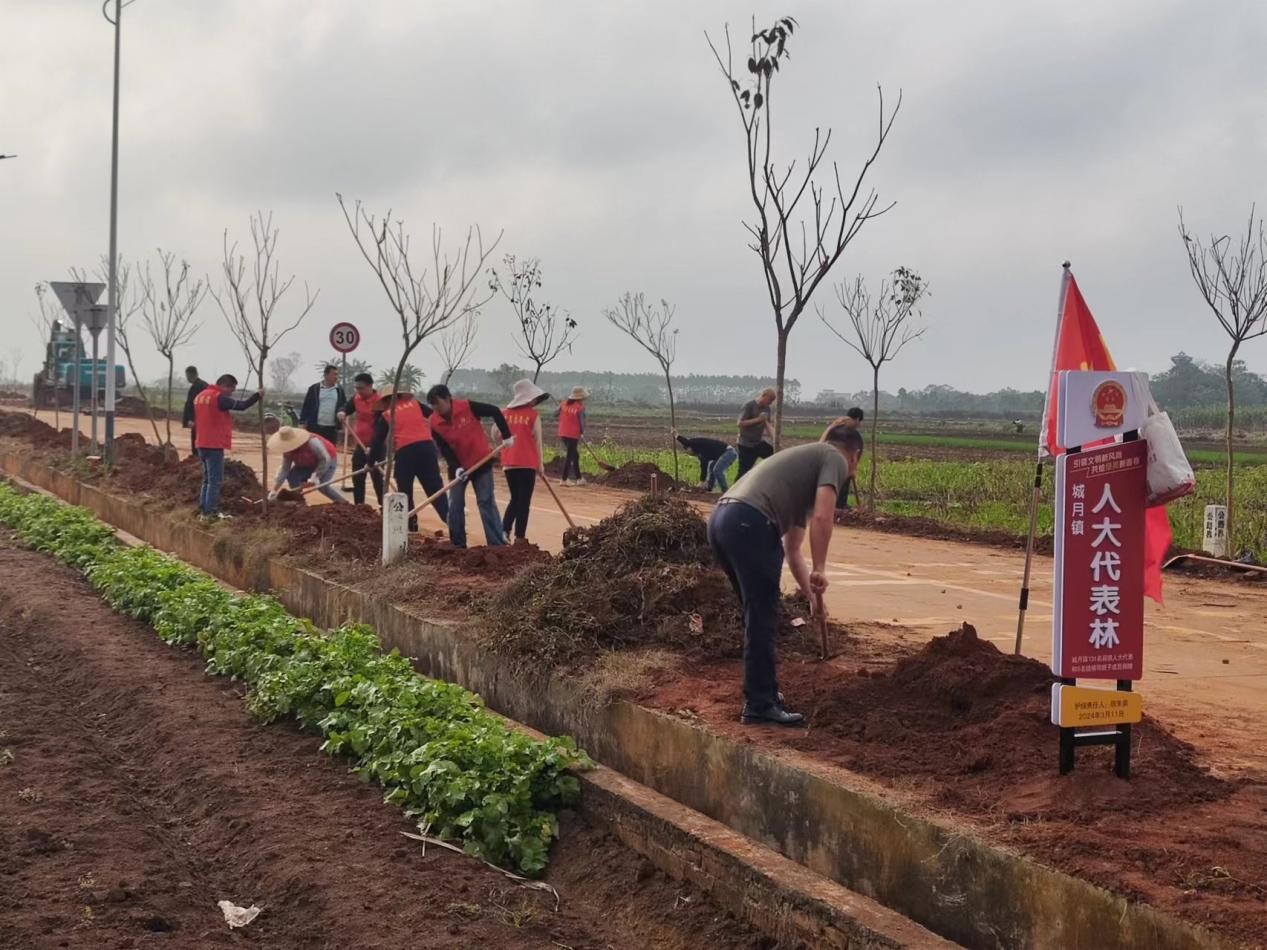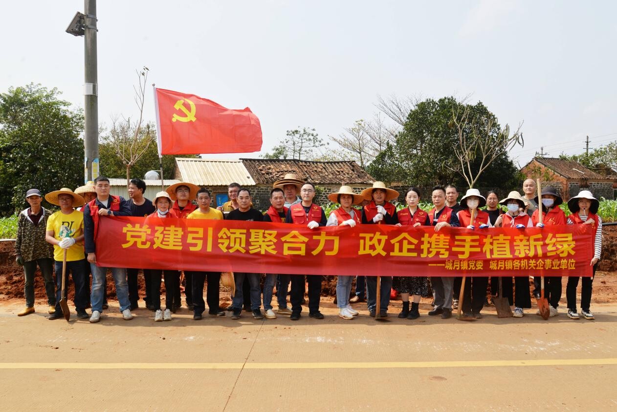 这一日,城月镇各村党组织也结合“植树节”广泛开展乡村绿化主题党日活动,全力激活党建因子,做足做强绿色大文章。邦机村、虎头坡村,潭葛村、高明村、官田村、家寮村、竹叶塘村、陈家村、迈坦村等20个党支部的党员群众挥锹铲土、扶树填坑、提桶浇水......成为全民植树绿化热浪席卷城月的一个缩影。