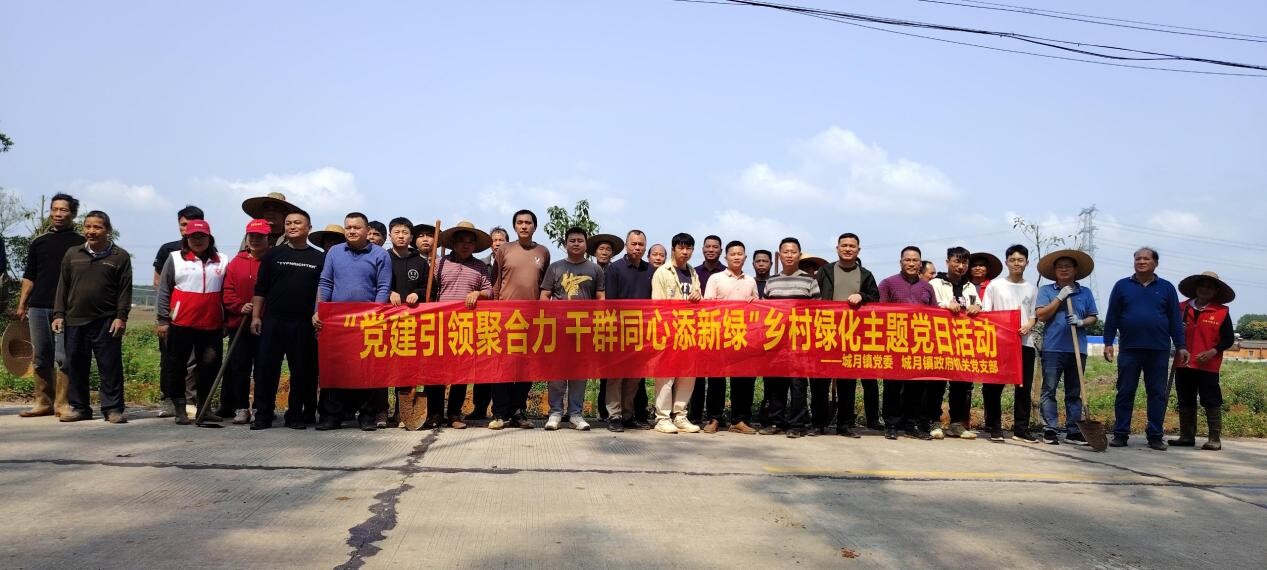 3月12日,城月镇机关党支部开展“党建引领聚合力 干群同心添新绿”主题党日活动,充分把党的政治优势、组织优势和密切联系群众优势转化为深入推进乡村绿化美化的工作优势,以党建为“针”,通过“穿针引线”凝聚各方力量,让“单打独斗”转变到“团结一心”,全力释放党群联动“磁场效应”。此次活动不仅发挥了党员的先锋模范作用,也进一步凝聚党群参与推动乡村绿化的工作合力,推进乡村振兴与绿美乡村互进互促,不断迸发发展“新动能”。