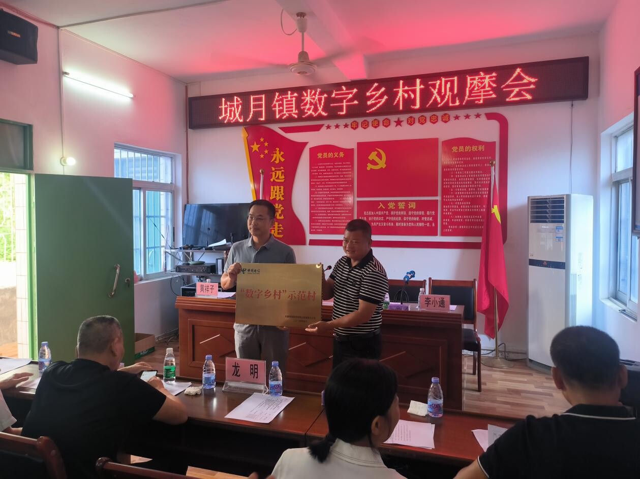 会上,举行授牌仪式,中国电信遂溪分公司为虎头坡村授予《“数字乡村”示范村》牌匾。