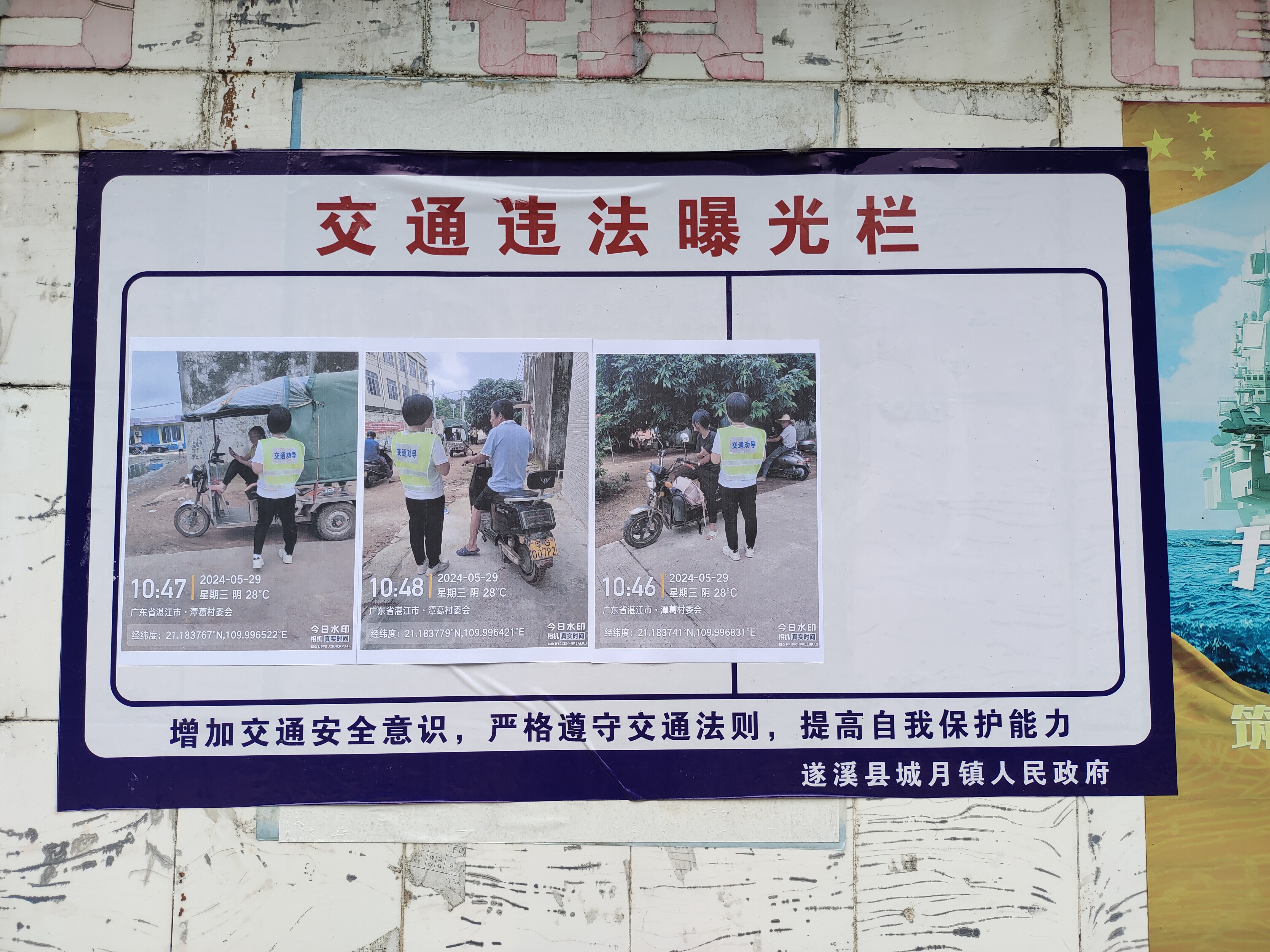 为切实加强我镇道路交通安全管理工作,有效预防和减少道路交通事故的发生。5月29日,城月镇组织镇村交通安全志愿队持续到辖区重点路段开展交通安全劝导工作,针对未佩戴头盔的摩电驾乘人员、超载等重点群体开展道路交通安全劝导工作,引导群众自觉遵守交通规则,坚决做到“两个不出村”,同时,对于交通违法行为进行曝光,进一步增强群众交通安全意识,营造安全有序的道路交通环境。