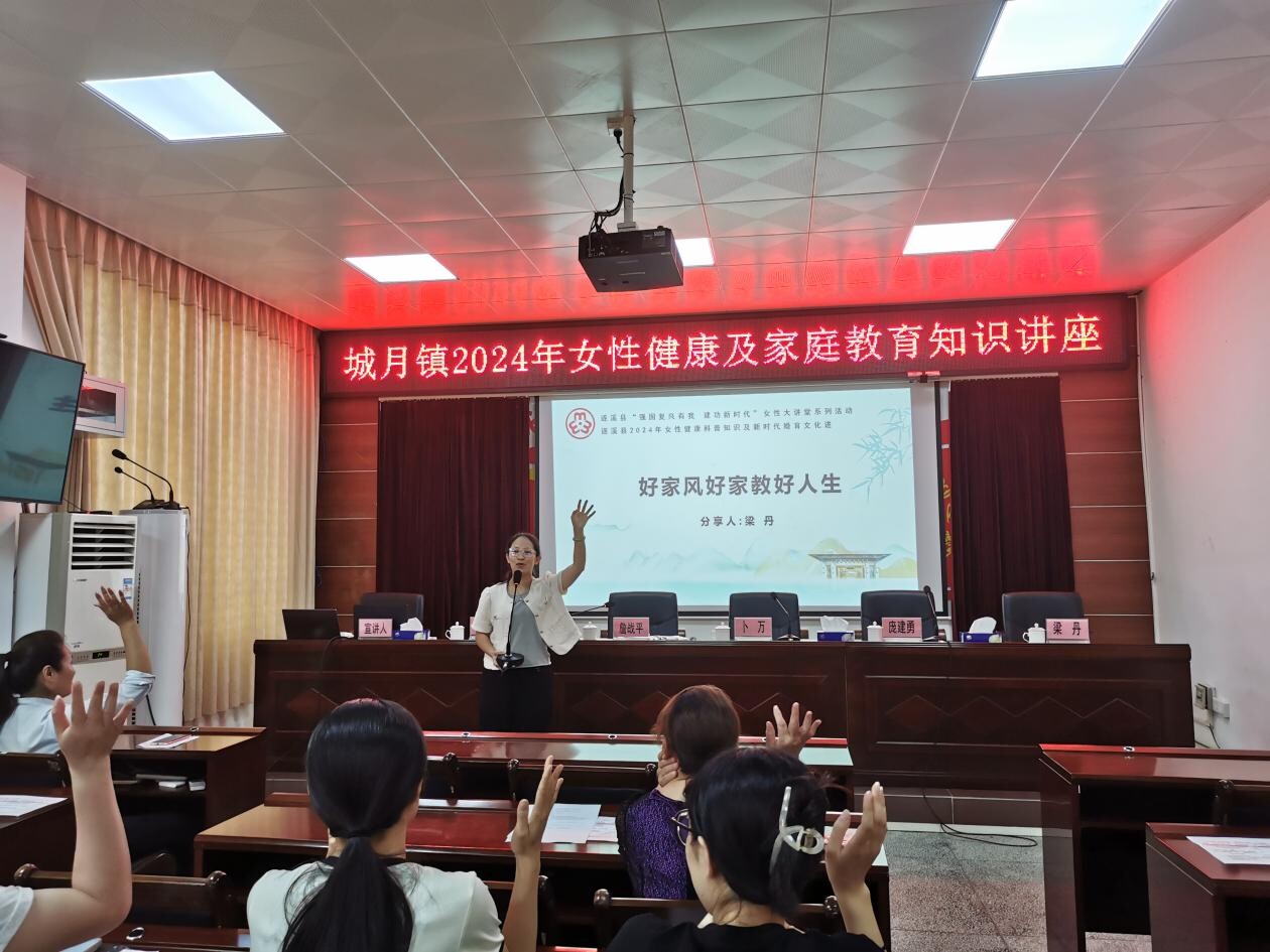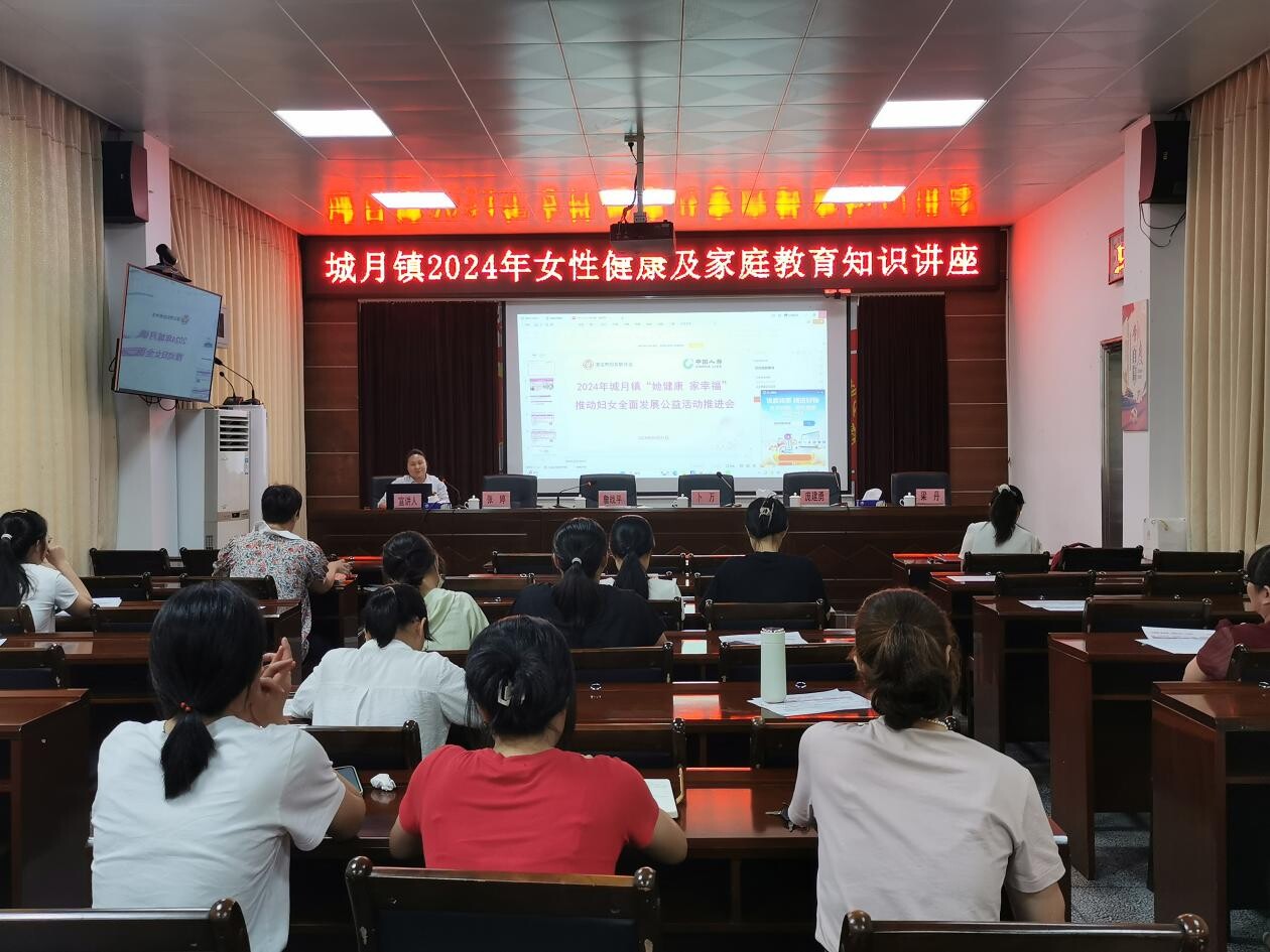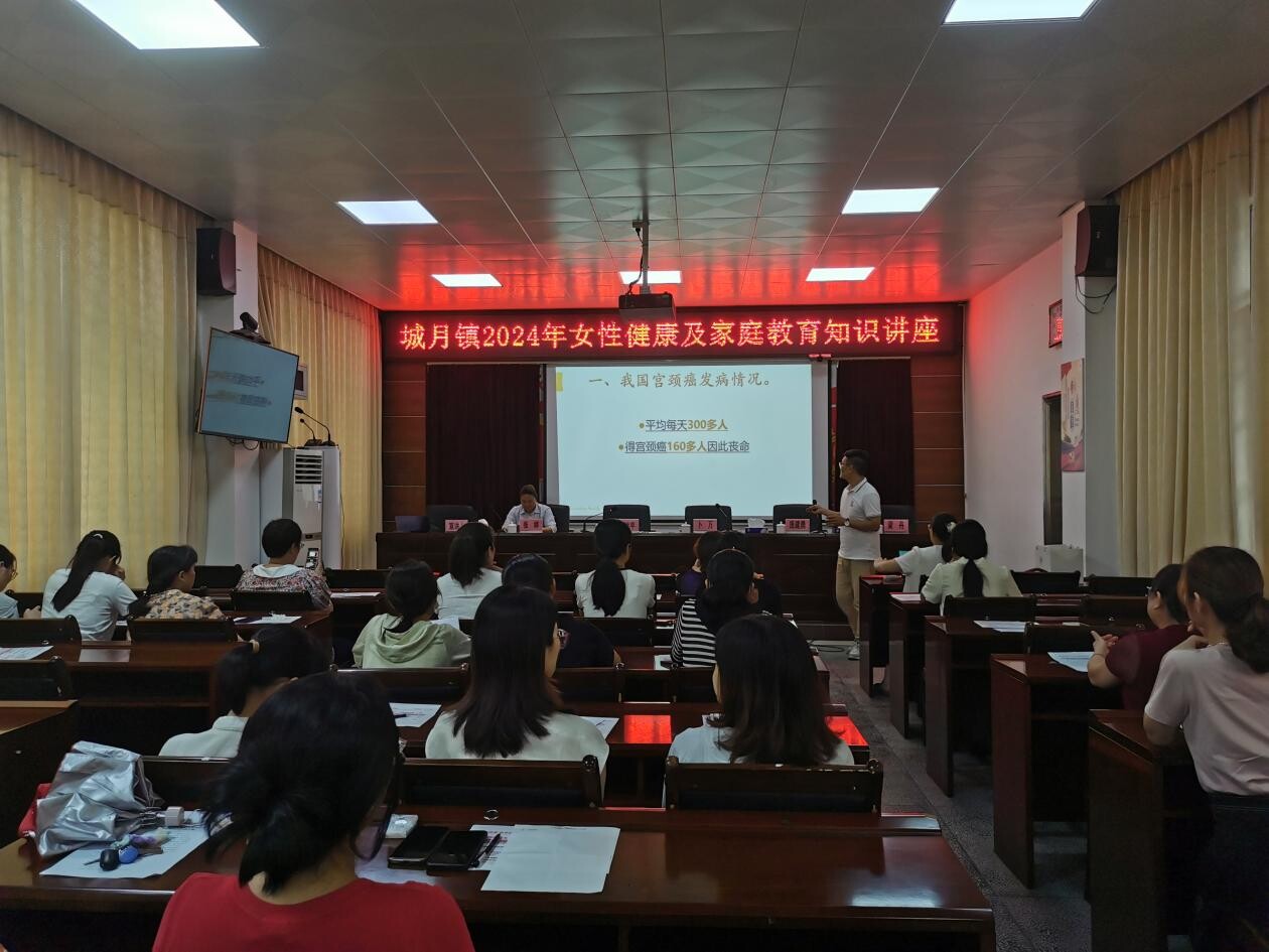 为了广泛普及女性健康科普知识,传播婚育新风,引导广大妇女树立健康理念及树立正确的家庭观、婚恋观,以家庭健康和谐促进社会和谐,助力健康遂溪、平安遂溪建设,5月31日,城月镇妇联举办“2024年女性健康科普知识及新时代婚育文化进基层”宣讲活动,由镇党委副书记詹战平主持,镇妇女干部等40余人聆听讲座。