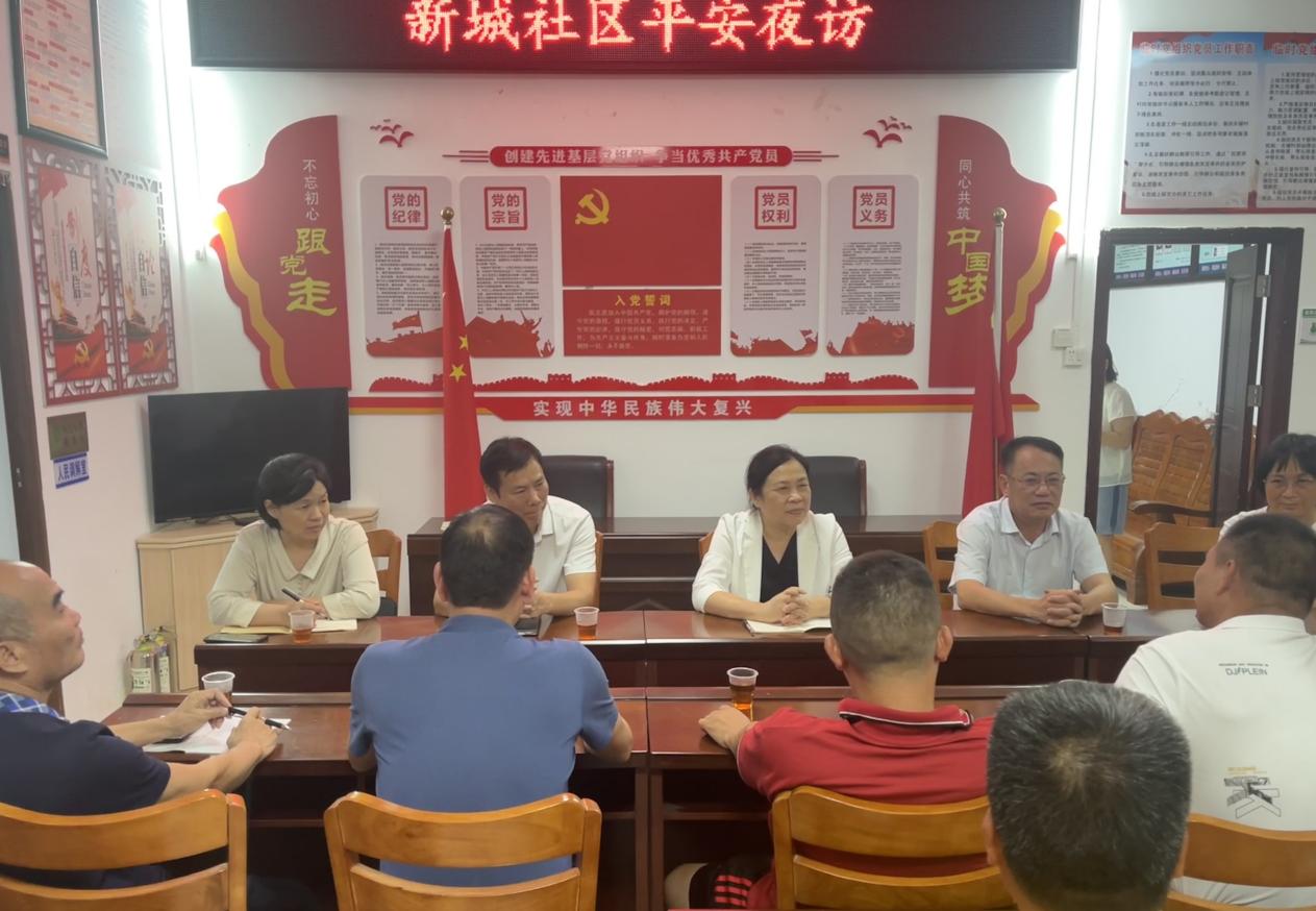 2024年6月25日,湛江市政协副主席、农工党湛江市委会主委陈国凤率队到城月镇开展“平安夜访”活动。陈国凤一行先后来到新城社区、邦机村委会与群众进行交流,认真倾听群众诉求,详细了解群众反映问题的内容,现场协调初步拟定解决新城社区群众反映“生活区路灯配备不够”、邦机村委会本土企业反映“新增电力线路”等问题的实施方案,与相关职能部门协商好解决问题时限,切实解决群众反映急难愁盼的问题。国凤同志强调,要深入践行新时代“枫桥经验”“浦江经验”,坚持问需于民、问计于民、问效于民,始终把群众利益放在第一位,及时梳理解决群众合理诉求,坚决维护群众合法权益,全力把矛盾纠纷化解在基层、化解在萌芽状态。多为群众“支支招”,通过谈话谈心的形式替群众解决问题,让群众的获得感成色更足、幸福感更可持续、安全感更有保障。