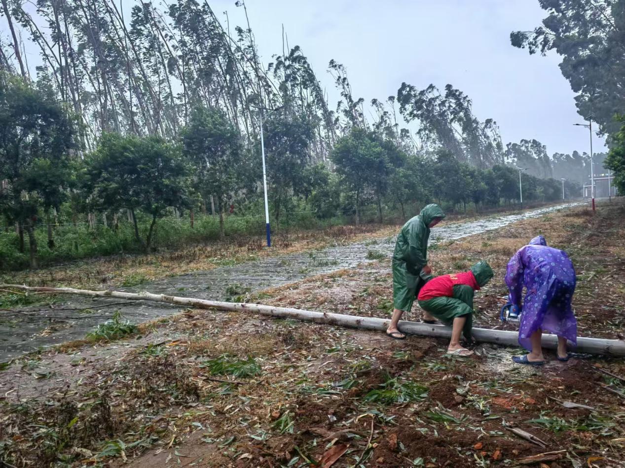 仁里村村道树木折断,影响车辆通行。有仁里村民急需前往医院,在致电村委会后,仁里村临时党支部迅速派出党员突击队逆风而行进行清障,有效保障了道路的正常通行和群众出行安全。