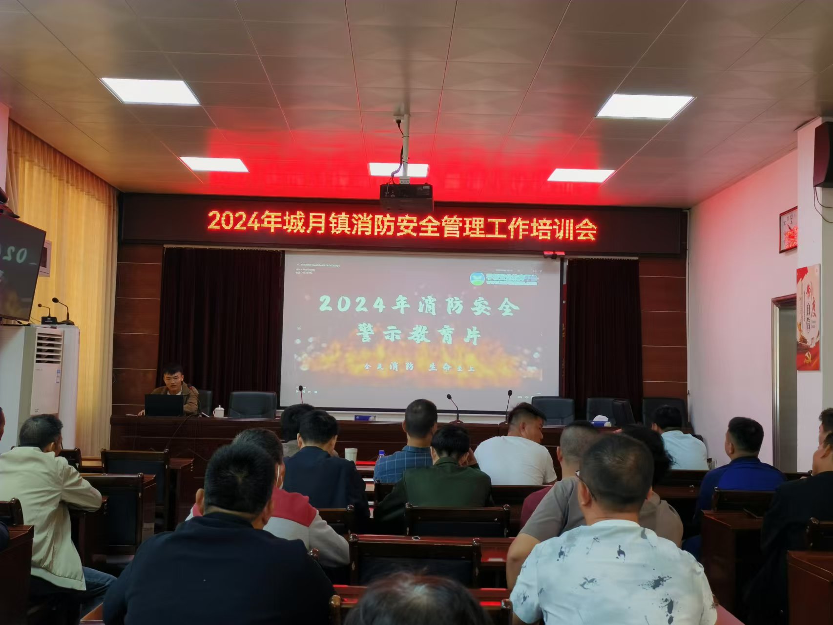 11月22日上午,城月镇开展2024年消防安全管理工作培训会。贯彻落实习近平总书记关于安全生产和消防安全重要论述,进一步推进安全生产治本攻坚三年行动和消防宣传月各项工作,不断提高我镇安全生产和消防安全管理工作。培训会由城月镇党委委员、副镇长全志成主持,城月派出所副所长卢江进行授课,参会人员:各村(社区)安全员、工贸企业、高层建筑、加油站、烟花爆竹零售店、酒店旅社、餐饮场所、医院等场所安全管理员或负责人参加。