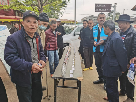 二是村口摆摊展览:通过仿真毒品模型、案例展板、互动问答等形式,直观揭示毒品危害,吸引村民驻足学习超200人次。
