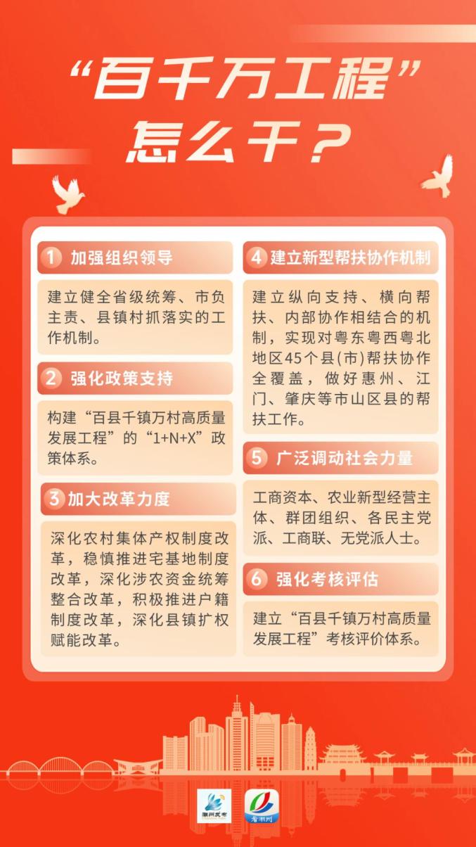 “百千万工程”全称是“百县千镇万村高质量发展工程”。“百”指的是广东省行政区内122个县(市、区)、“千”指的是1609个乡镇(街道)、“万”指的是 2.65万个行政村(社区)。