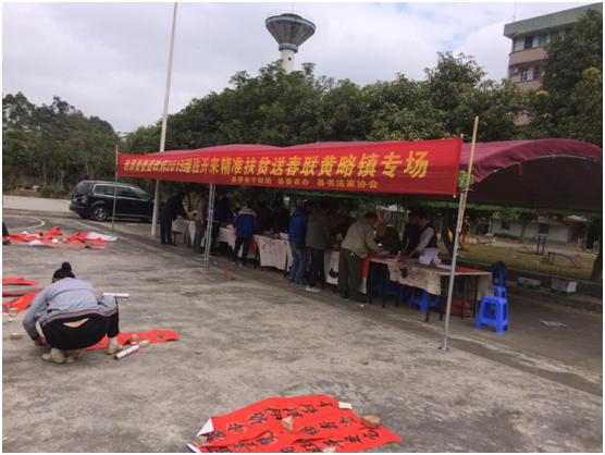 为深入学习宣传贯彻习近平新时代中国特色社会主义思想和党的十九大精神,为精准扶贫户送上节日祝福和关怀,营造喜庆祥和的节日氛围。2019年1月29日上午,黄略镇联合县委老干部局、县委农办、县书法家协开展2019继往开来精准扶贫送春联活动。本次活动邀请县书法家协会12位书法家现场免费为贫困户书写春联,提前送上新春祝福。