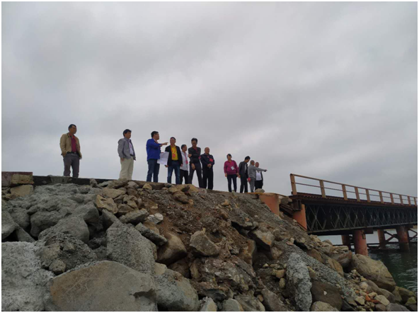 代表们实地视察了调顺跨海大桥施工现场,认真听取了调顺跨海大桥项目部党工委副书记郭琦琳和征拆工作组的相关情况介绍,详细了解当前征拆工作进度、施工进展、存在的困难以及该项目建成后的效果。黄略段红线用地465亩,现已交地385亩,完成82.80%。调顺跨海大桥项目路线全长9.360km,全线桥涵工程5km,路基4km,截止2019年3月底,已完成施工进度47.02%。