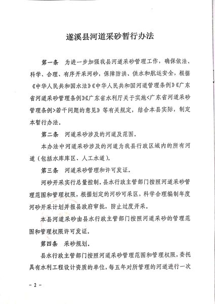 遂府规—2019—001 遂溪县人民政府关于印发遂溪县河道采砂暂行办法的通知(遂府〔2019〕1号)