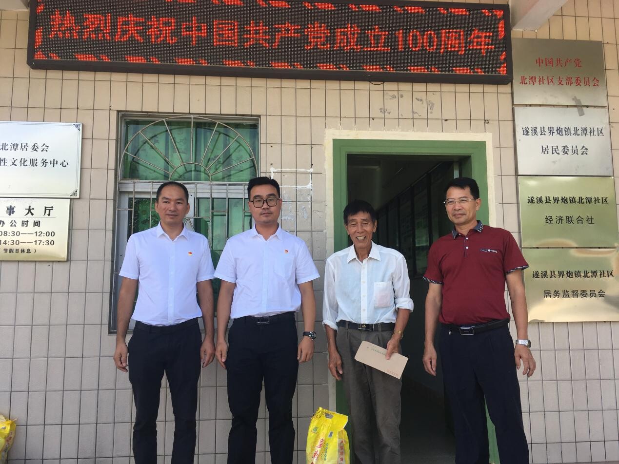 为庆祝中国共产党成立100周年,2021年7月1日,界炮镇党委书记詹仲茗率队分别走访慰问新中国成立前入党老党员、困难老党员和烈士家属,走访中,镇党委书记詹仲茗和我镇退休老书记、新中国成立前入党老党员马卓礼同志亲切交谈并详细询问老同志的身体状况和生活情况,并送上慰问金和生活用品和佩戴“光荣在党50年”纪念章,向他们表达党和政府的关心和牵挂,一起庆祝中国共产党成立100周年,享受党组织不断发展壮大的伟大成果。