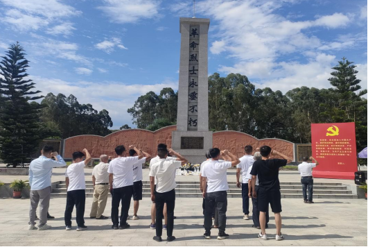 在柑村革命烈士陵园,全体人员举行了庄重的缅怀革命先烈仪式,大家齐唱国歌、行默哀礼、重温入党誓词、逆行烈士陵园、瞻仰缅怀烈士等,共同回顾了波澜壮阔的革命斗争史,仿佛回到了当年枪林弹雨、硝烟弥漫、血雨腥风的战争岁月,令人震撼,全体参观学习人员接受了一次深刻的党性教育和思想灵魂的洗礼。