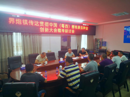 为传达贯彻湛江市召开中国(粤西)樱桃番茄(即圣女果)种业创新大会会议精神,进一步推进界炮圣女果产业发展,2022年7月21日,界炮镇召开传达会议精神研讨会,会议由界炮镇党委副书记、镇长岑志东主持,界炮镇人大主席林志平、驻镇工作队队长陈嘉伟、农办主任马剑飞以及工作队队员、西湾村委书记、江头村村长、铭景公司董事长一同参会。会议主要围绕两个议题召开: