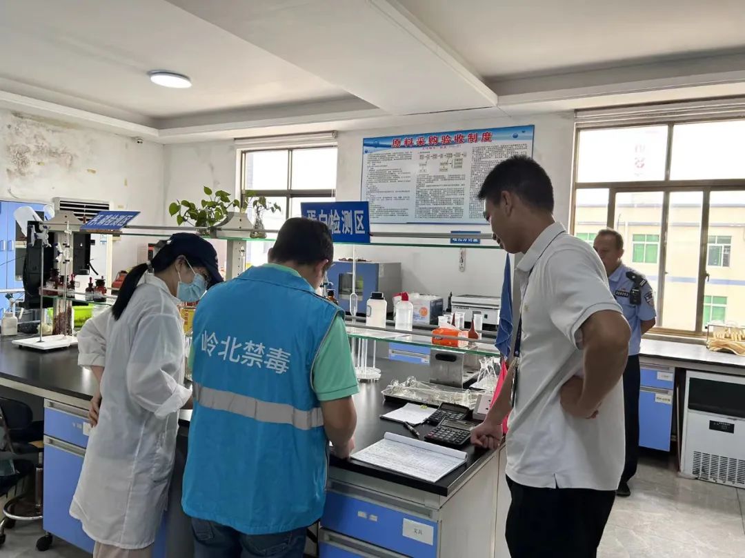 为贯彻落实全市禁毒工作部署,严防易制毒化学品流入非法制毒渠道,切实加强对易制毒化学品使用企业的管理力度。5月10日,遂溪县岭北镇禁毒办联合岭北派出所对辖区内使用易制毒化学品的企业开展专项检查行动。
