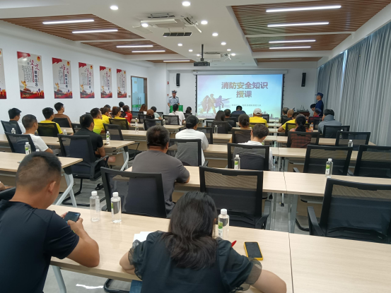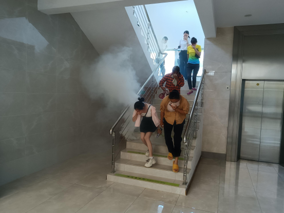 安全生产月消防宣传培训讲解结束后,开展消防演练活动。首先组织全体员工开展安全疏散逃生项目,员工从会议室按照疏散逃生要求快速以掩捂口鼻、低姿弯腰的姿势离开浓烟区域,按照既定要求安全疏散到集合点后,部门负责人清点人数,确认已全员安全撤离。消防安全宣讲员结合火灾事故真实案例以案说法,分析消防安全形势,并结合生产生活实际,从日常防火、用电安全、火灾自救等方面进行生动、形象地讲解,让全体人员对消防安全和火灾应急措施有更加深刻的认识。