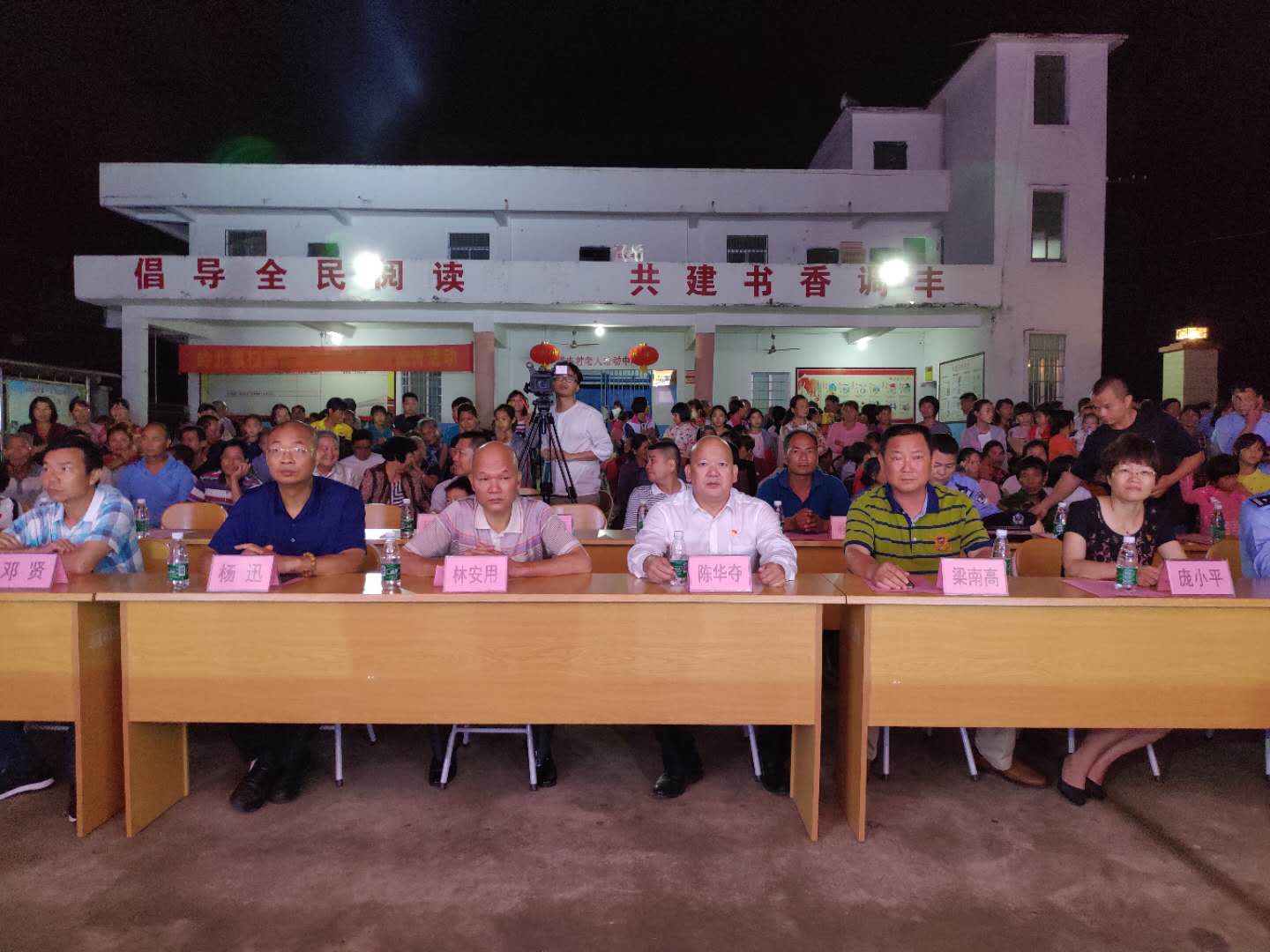 为深入推进扫黑除恶的开展,全民参与的浓厚氛围,4月12号晚由县委政法委、岭北镇委员会、岭北镇镇政府主办,县文化广电旅游体育局、县妇女联合会、共青团遂溪县委员会、岭北镇调丰村总支部委员会等单位协办的《岭北镇全民参与扫黑除恶 共建平安和谐岭北》送戏下乡活动在岭北镇调丰村举行。县委政法委常务副书记林安用、县委政法委副书记杨迅、岭北镇镇长陈华夺、镇委副书记梁南高、镇纪委书记庞小平、镇委委员邓贤等领导及调丰村村民500多人观看了演出。