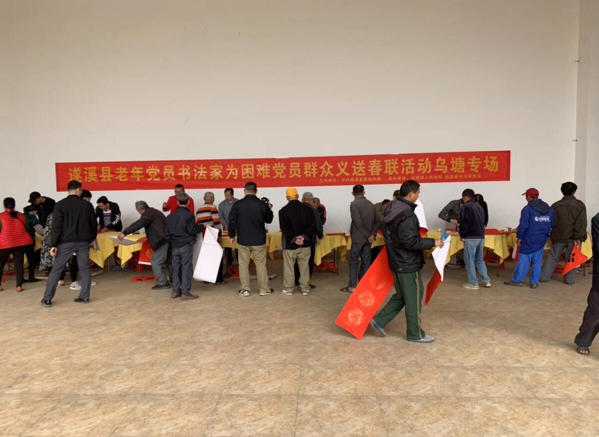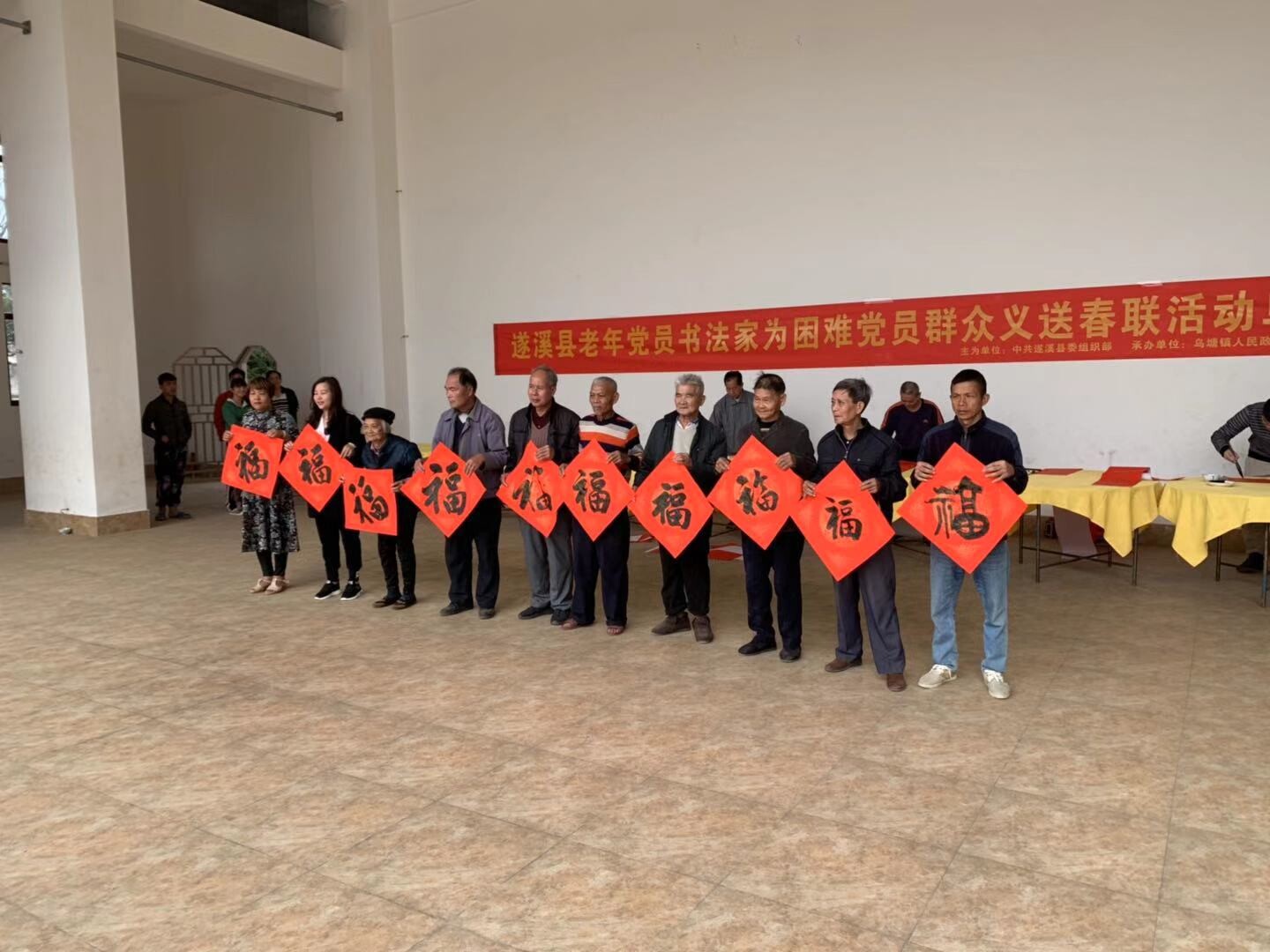 春节将至,为营造喜庆祥和的节日气氛;1月13日,遂溪县委组织部、遂溪县书法家协会联合乌塘镇开展“为困难党员群众义送春联”活动。在乌塘镇文体公园广场开展“迎新春,送祝福”写春联活动,提前为乌塘镇困难党员群众送上真挚的新春祝福。