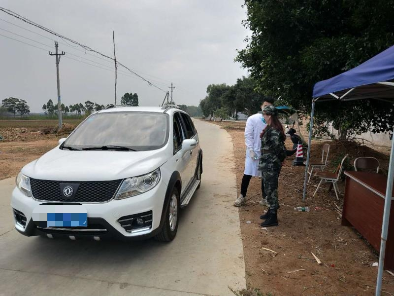 “萍姐,又在测体温啊,辛苦了。”乌塘岭村委的群众都能看到在路口设卡登记的网格员梁珊萍。