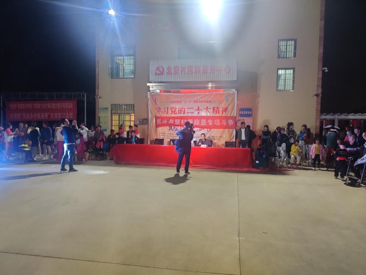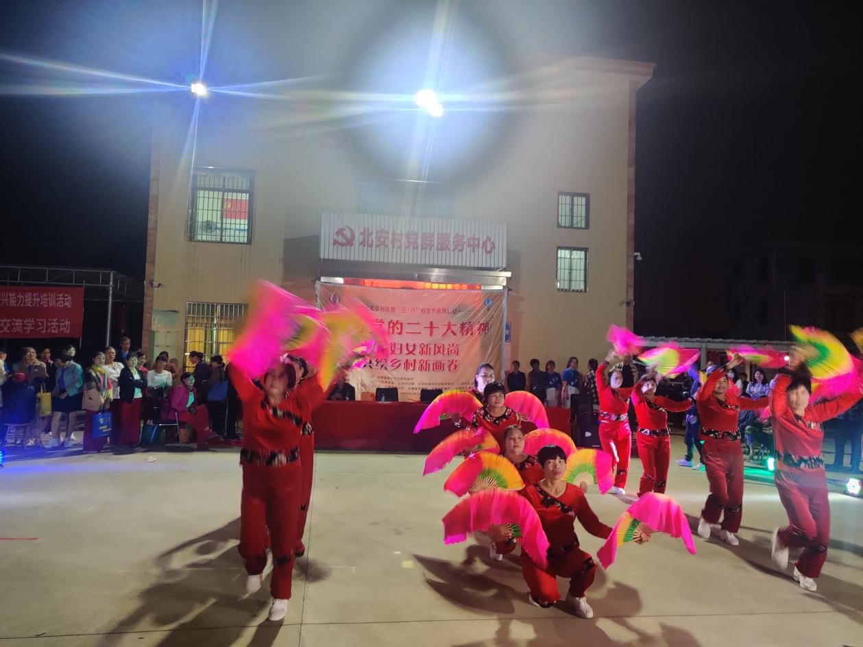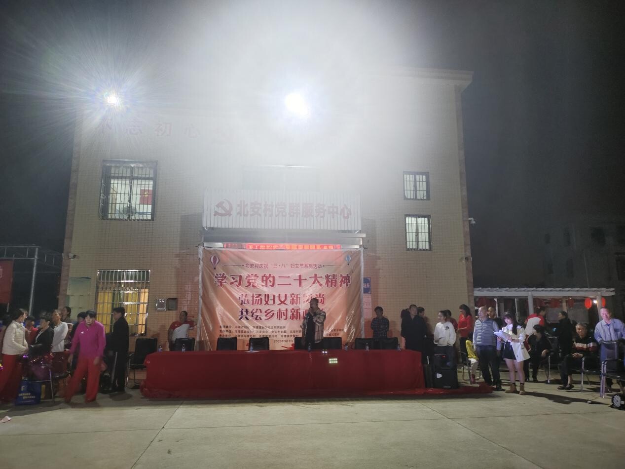 为迎接第113个“三八”国际妇女节的到来,进一步团结辖区内妇女群众立足岗位建新功,让妇女群众度过一个开心的节日,3月7日晚上,在乌塘镇妇联、乌塘镇新时代文明实践所的指导下,乌塘镇北安村举办“弘扬妇女新风尚 共绘乡村新画卷”文艺晚会,吸引了镇辖区内100多名干部群众观看。镇党委委员、副镇长吴忠强,镇党委委员谭泉玉,镇人大副主席庞兴出席参加本次晚会。