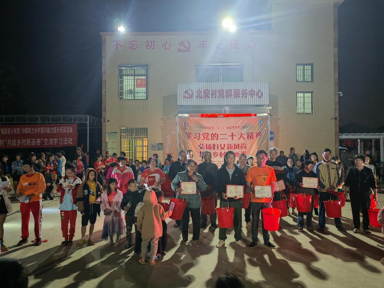 最后是最美系列活动表彰环节,共表彰2022年度“最美家庭”10户、“最美媳妇”10人、“最美庭院”5户。近年来,北安村深入贯彻落实习近平总书记关于家庭家教家风建设的重要论述,持续以家庭家教家风建设为抓手,深化乡风文明建设,以家风带民风、民风助村风,树立起文明健康的乡风民风,实现了乡风民风美起来、人居环境美起来、文化生活美起来。2022年,北安村开展寻找“最美家庭”“最美妇女”等一系列最美活动,还推选出了1户镇级“最美家庭”、1户县级“最美家庭”;该村获得2022年“遂溪县文明村”荣誉称号。在上级妇联的带动下,北安村注重结合“最美家庭”、文明村创建、移风易俗等活动,深入开展精神文明创建工作,不断引导广大群众践行优良家风家教,推动家风建设,让好家风引领好民风好乡风。