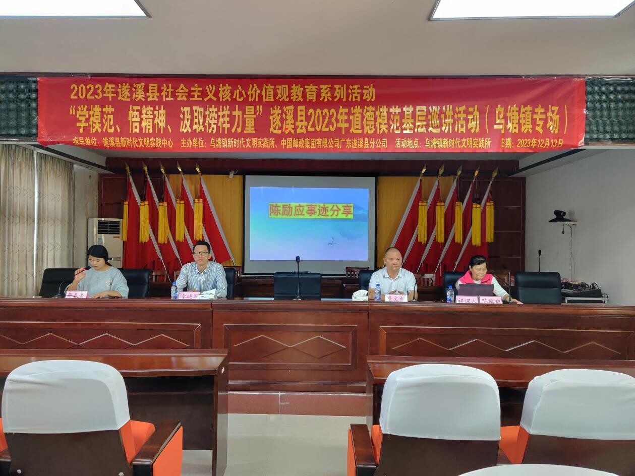 为充分发挥先进典型的引领作用,形成学习道德模范、崇尚道德模范、争当道德模范的社会新风,培育和践行社会主义核心价值观,12月13日,乌塘镇联合中国邮政集团有限公司广东省遂溪县分公司在镇新时代文明实践所开展“学模范、悟精神、汲取榜样力量”道德模范基层巡讲活动。