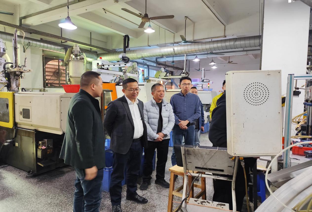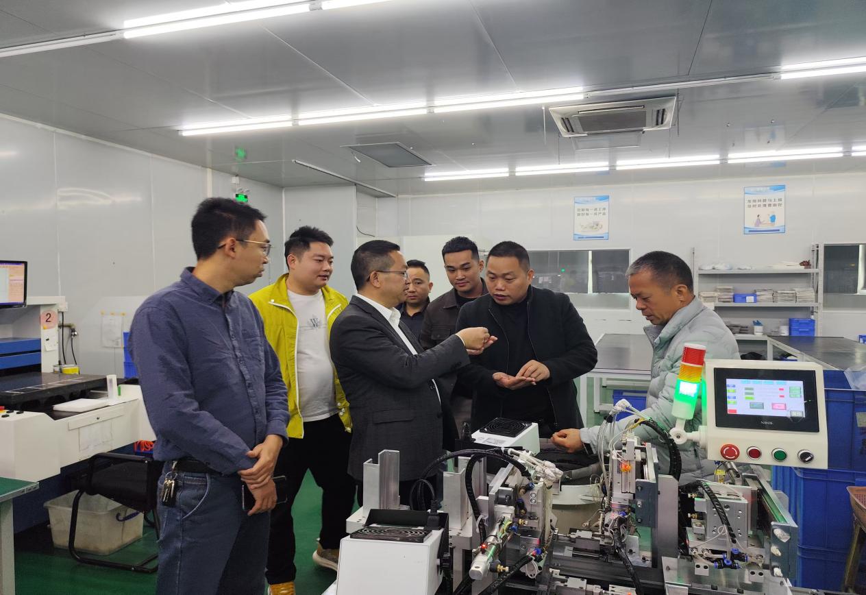 洪文泽一行前往东莞市三省电子有限公司,深入生产车间,详细了解公司发展历程、产品种类、发展规划等情况,并与企业相关负责人进行座谈交流。