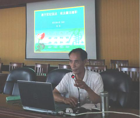 培训班邀请了遂溪县纪委监委正科级纪检监察员朱海同志授课,围绕“遵守党纪国法,依法廉洁履职责”为主题,从遵党纪守国法、尽职责敢担当、 依法规履职责、维集体护群众、严修身防腐变五个方面,以身边案教育警示大家,起到震慑作用,引导广大党员干部以案为鉴、汲取教训,自觉践行忠诚干净担当要求。