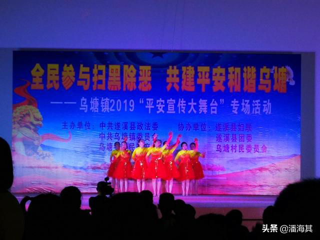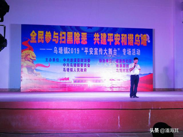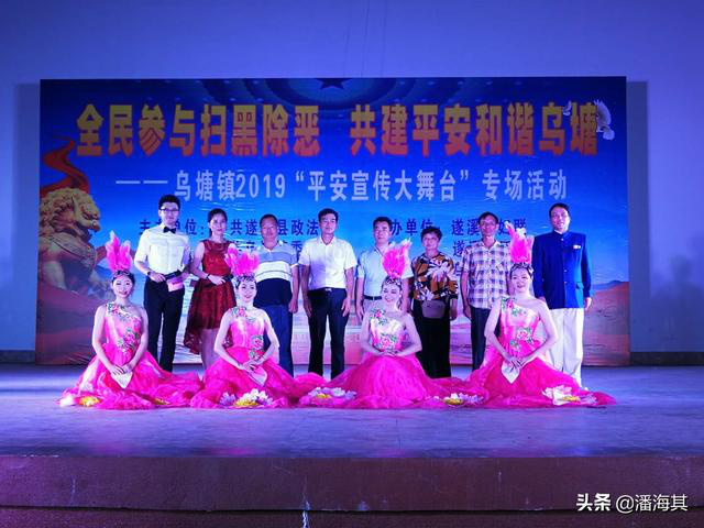 5 月20日晚,由中共遂溪县委政法委、乌塘镇镇委、乌塘镇人民政府、乌塘圩村委会、边草塘村委会、米塘村委会、白水塘村委会、安贡村委会、梁村村委会、庞村村委会联合举办,县团委、县妇联等多部门协办,以“平安建设宣传”为主题的专场晚会,在乌塘镇文化广场举办。乌塘镇部分班子成员、村委会全体干部、社会各界群众共1000多人参加。乌塘镇党委副书记、政法书记周泽做活动致辞。
