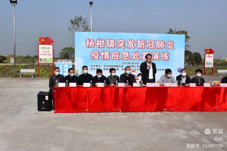 2021年1月29日上午,杨柑镇在布政村委会布政村举行新冠肺炎疫情防控应急处置演练。镇领导班子成员、镇疫情防控工作领导小组成员单位、各村党支部书记和布政村委会村长、群众代表近50人参加了演练。