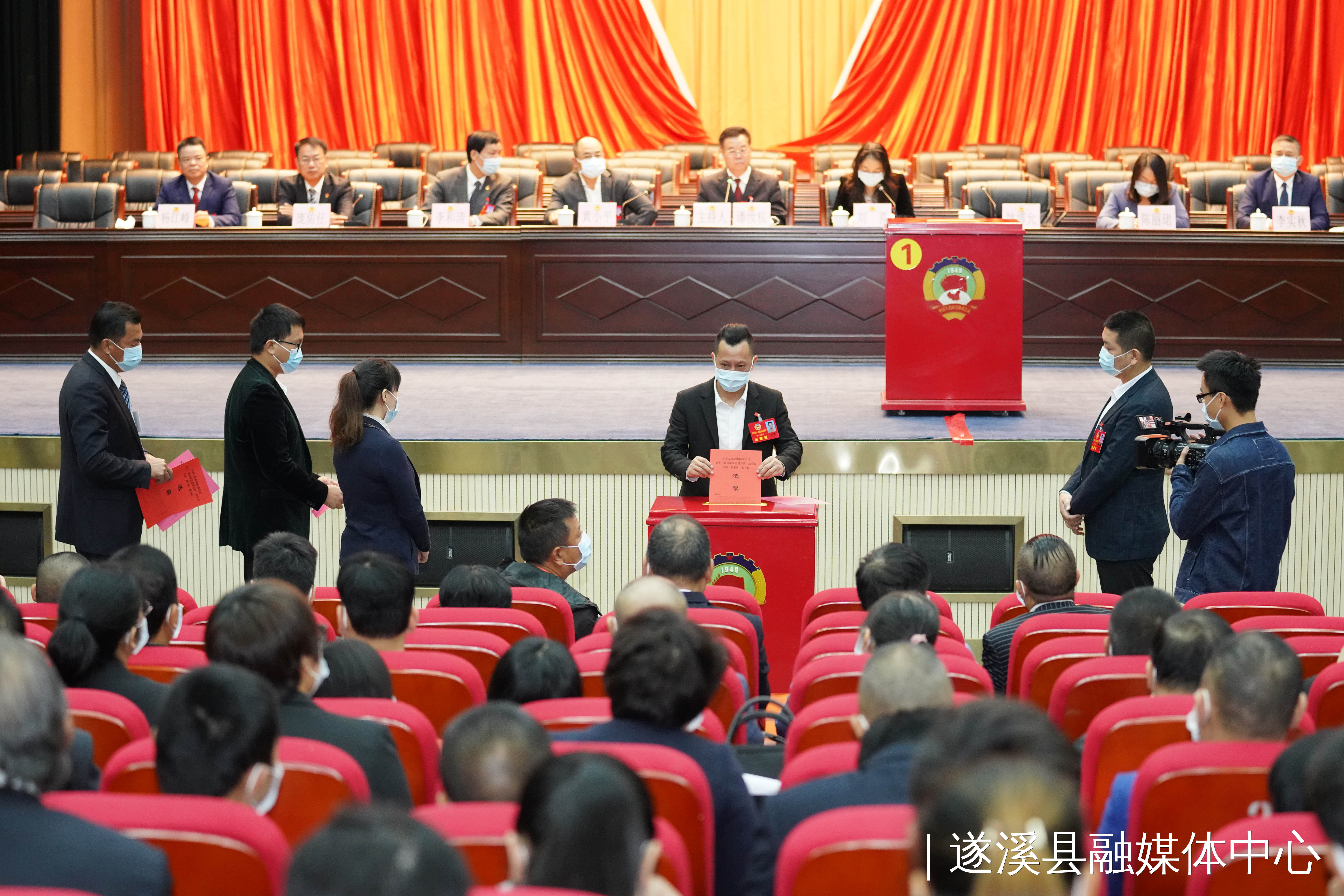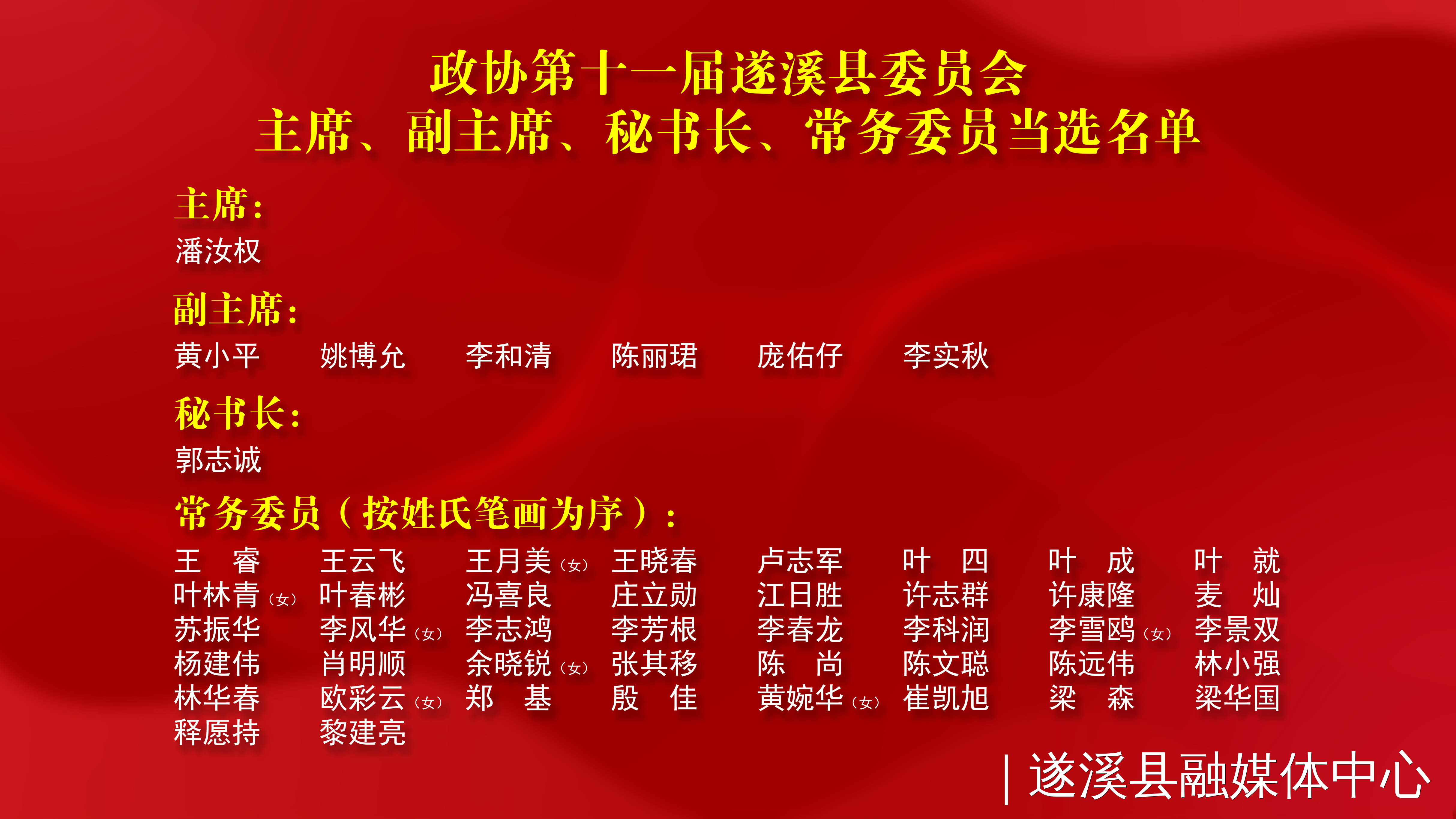 大会闭幕前,政协第十一届遂溪县委员会第一次会议召开第二次全体委员会议,大会通过无记名投票选举政协第十一届遂溪县委员会主席1名、副主席6名、秘书长1名,常务委员42名。