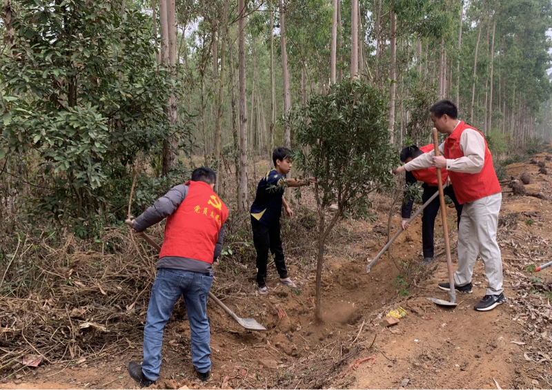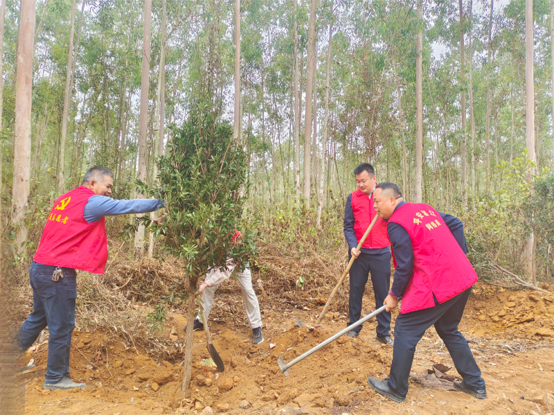(镇党委副书记、镇长袁伟强等领导班子率先垂范,参与植树)